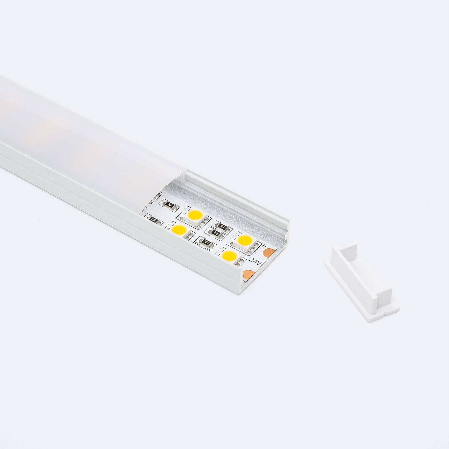 Perfil Aluminio Superficie para Tira LED hasta 20 mm con Tapa Continua