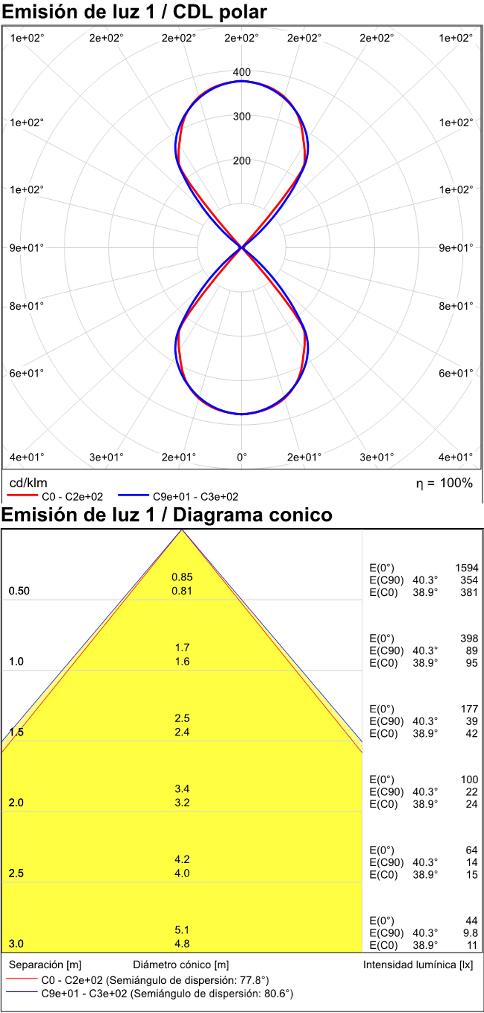 Especificaciones y datos fotométricos