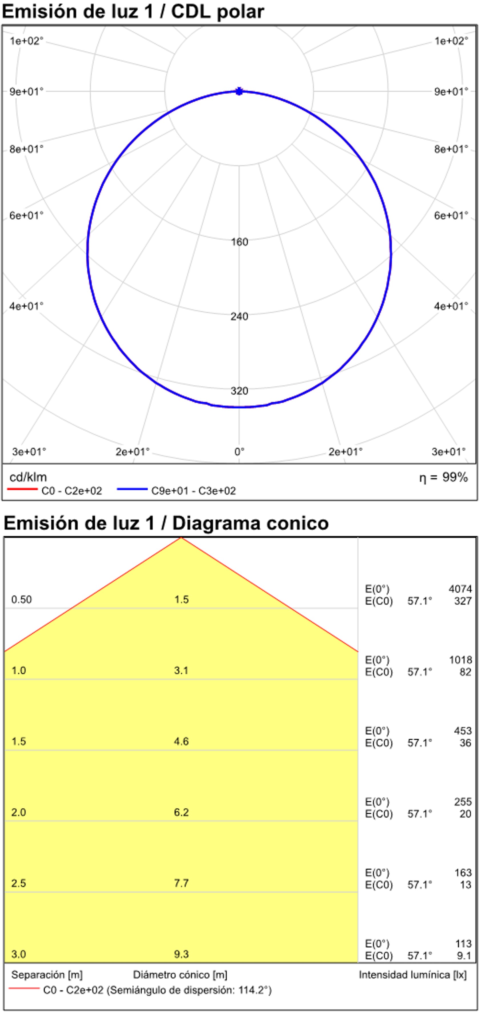 Especificaciones y datos fotométricos