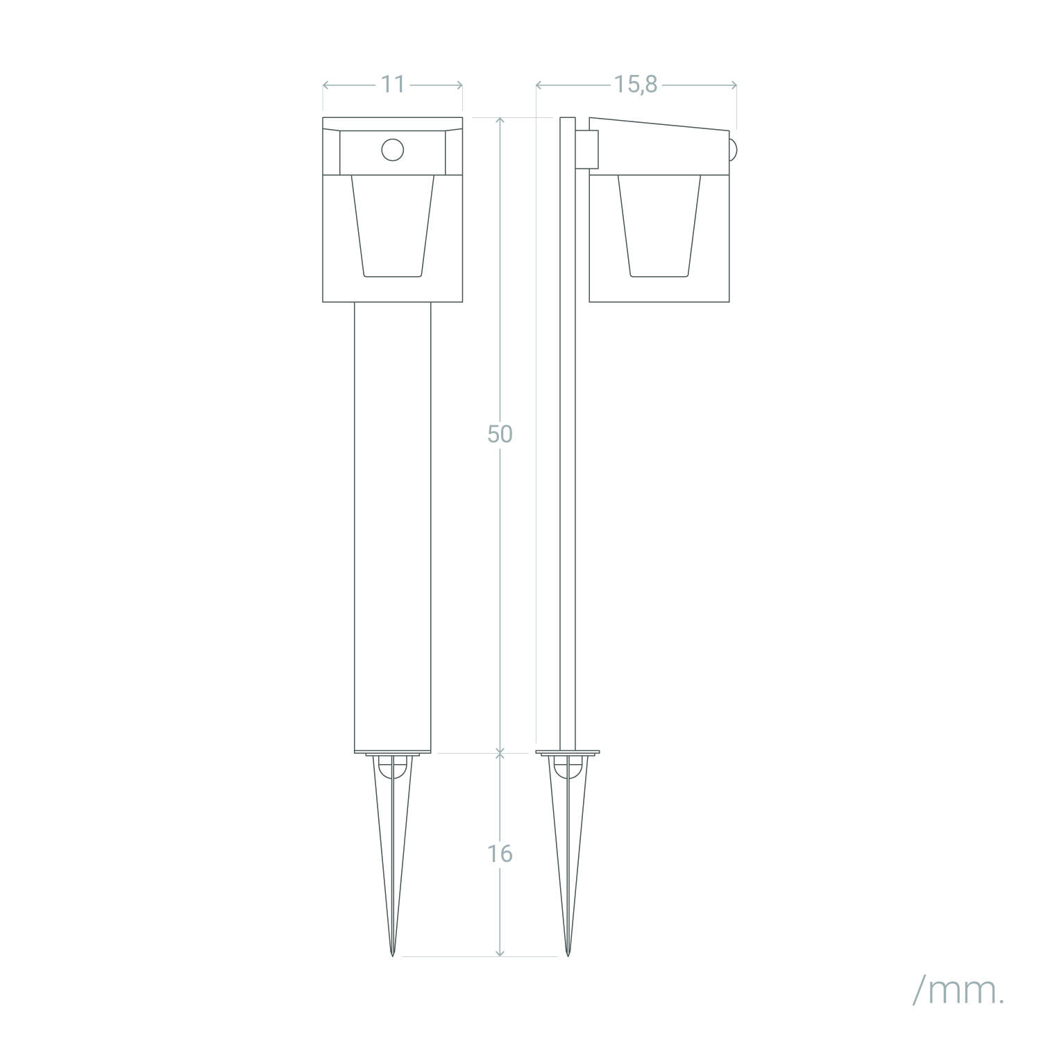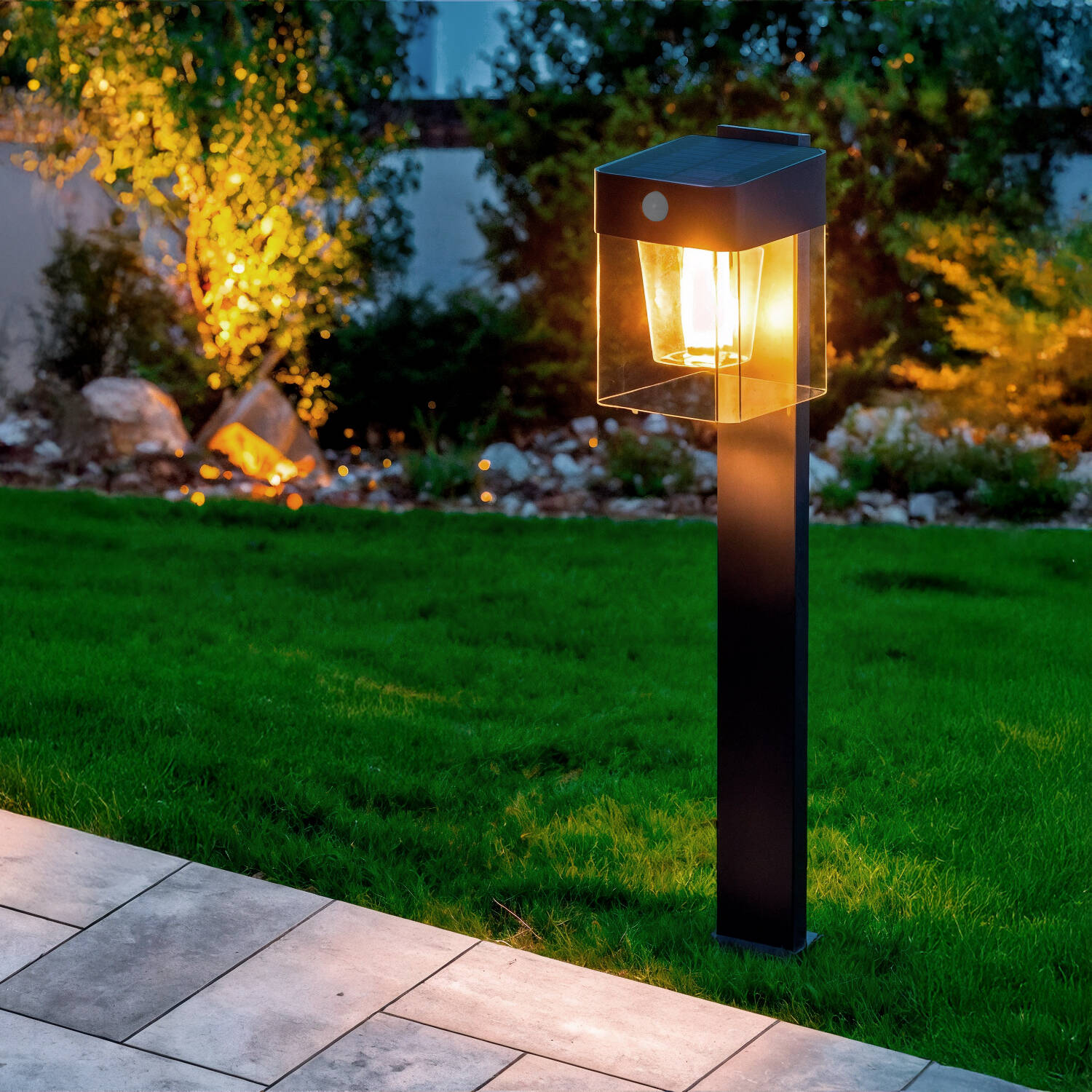 Baliza de Pie Exterior Solar LED 1,5W 46cm Aluminio con Sensor de Movimiento Efren Square