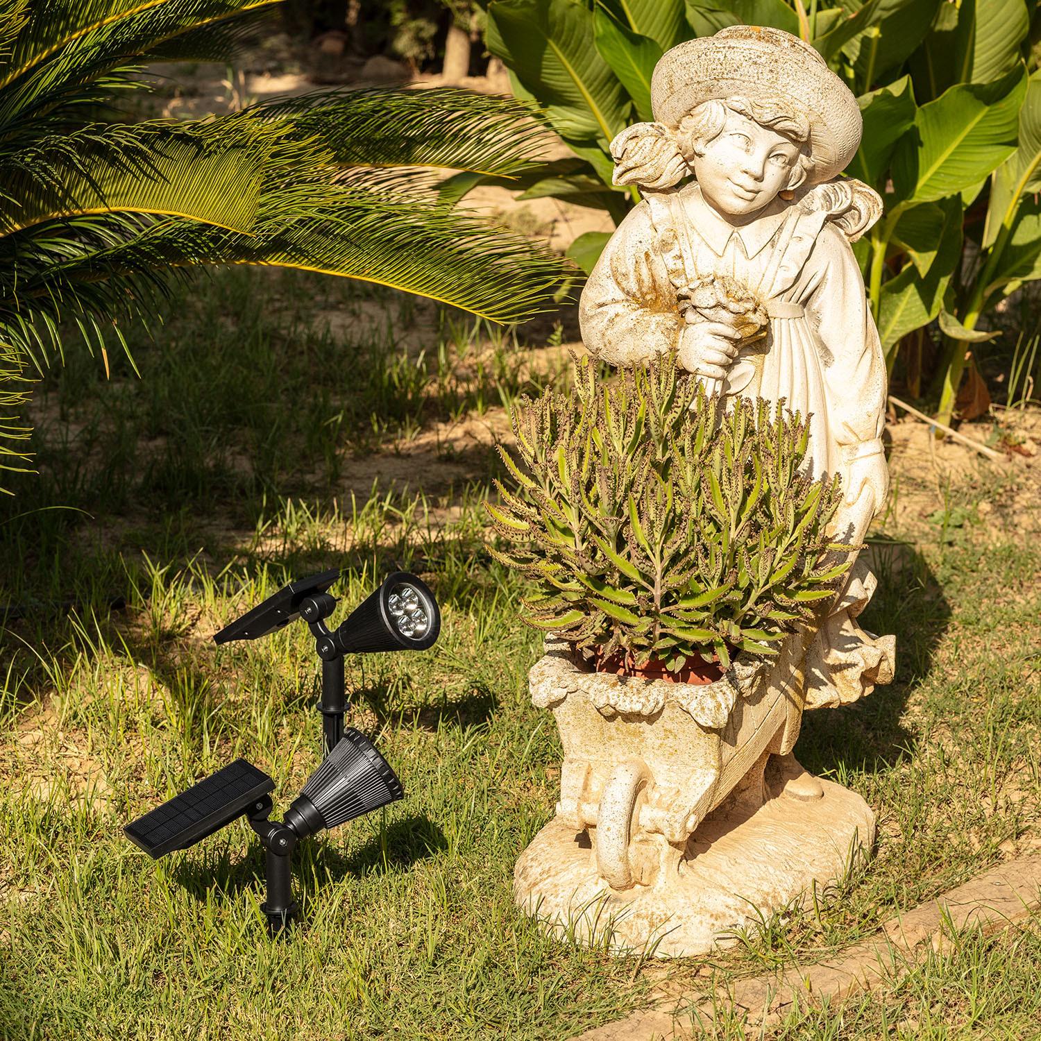 Ilumina tus espacios exteriores con el Foco Solar Exterior LED RGB con Pincho Meillion, diseñado para aportar color y funcionalidad sin consumo eléctrico. Con 4 LEDs RGB que ofrecen hasta 200 lúmenes, este foco permite cambiar entre múltiples colores para crear ambientes únicos. Fabricado en ABS, aluminio y PC, es resistente al agua con protección IP65, ideal para exteriores. Su instalación con pincho facilita su colocación en jardines o caminos, soportando temperaturas desde -10 °C hasta 55 °C. Además, cuenta con certificaciones CE, RoHS y UKCA, garantizando calidad y seguridad. Perfecto para decorar y resaltar detalles en tu jardín de forma sostenible y duradera, con una garantía de 3 años.