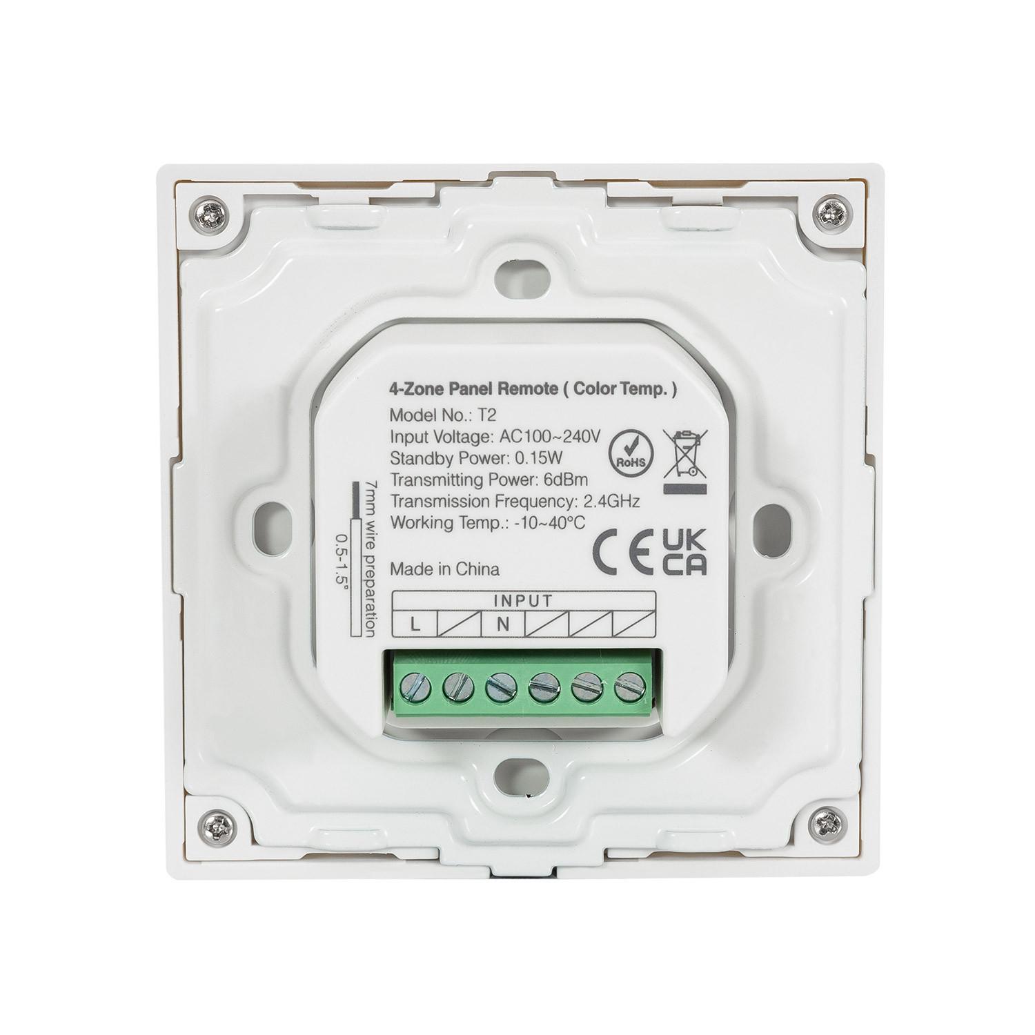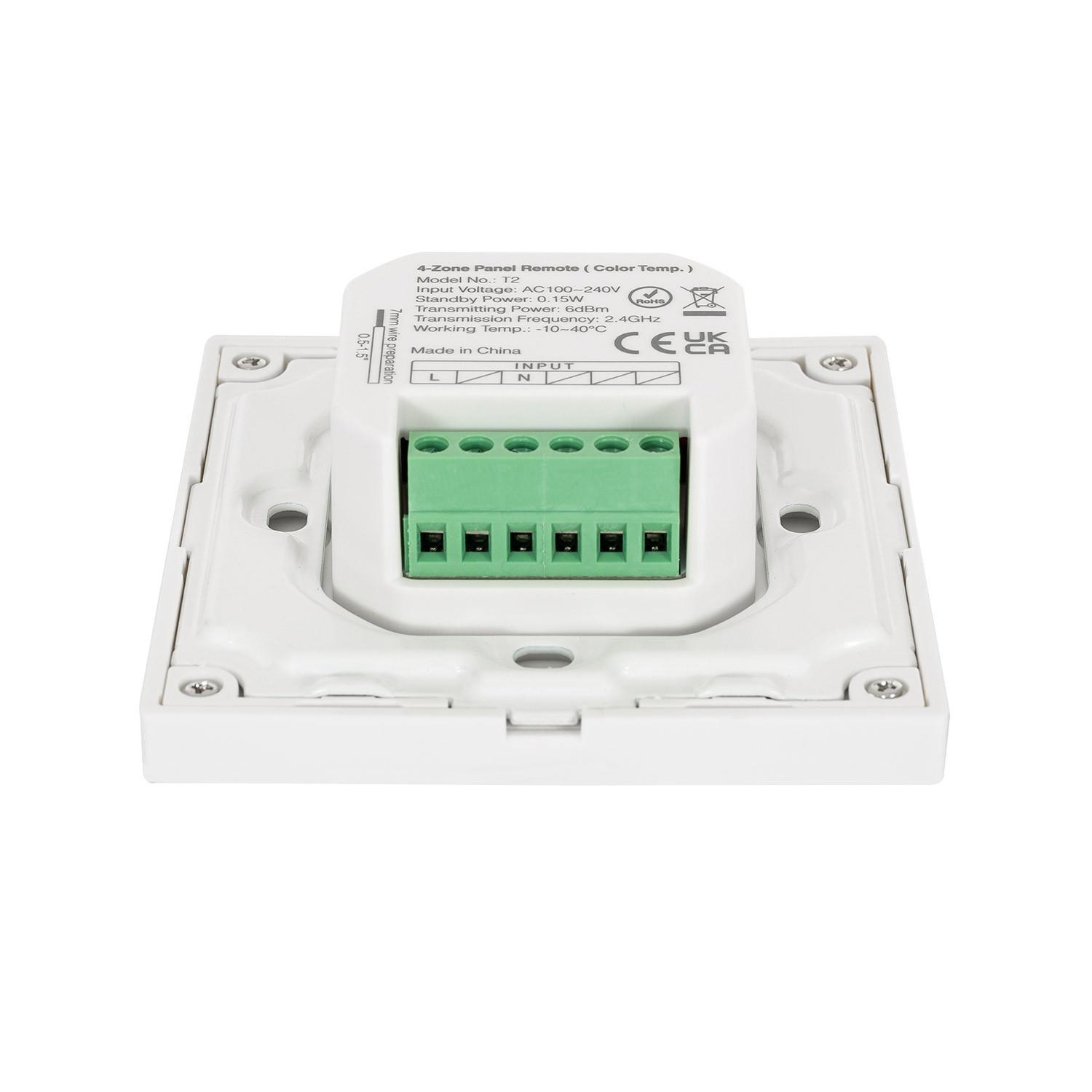Mando RF 220-240V AC de Pared para Regulador LED CCT 4 Zonas RF MiBoxer T2