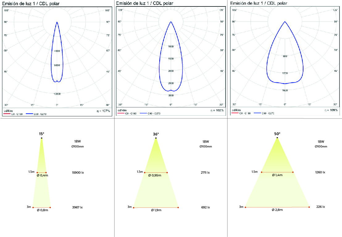 Especificaciones y datos fotométricos
