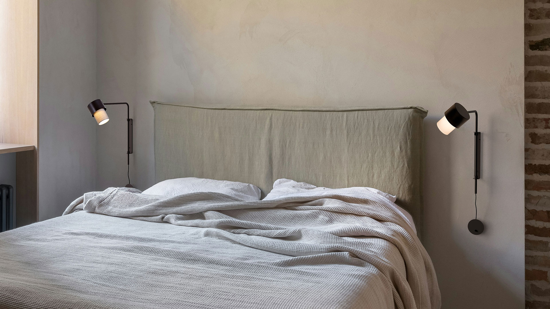 Inspirada en los juegos de encajes entre módulos, la colección Kan quiere crear un efecto de luces entre piezas que se iluminen mútuamente y que permitan matizar la luz para crear espacios amables y cálidos. Un juego entre texturas, frías en la parte metálica y cálidas en la parte téxtil.