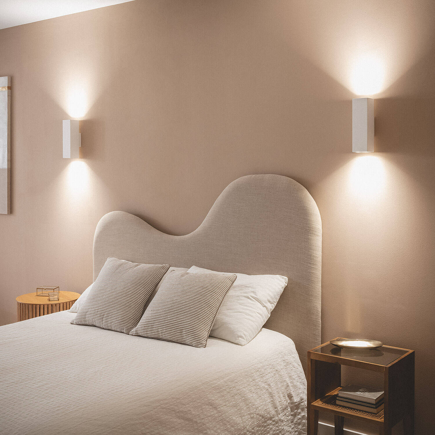 Este aplique de pared de yeso en color blanco destaca por su diseño minimalista y elegante, ideal para ambientes interiores modernos. Cuenta con iluminación doble cara que proyecta luz hacia arriba y abajo, creando un efecto visual sofisticado y acogedor. Compatible con bombillas GU10 de hasta 10 W (no incluidas), funciona con una tensión de 220-240V AC y frecuencia de 50-60 Hz. Su protección IP20 lo hace apto para interiores, soportando temperaturas de -20 °C a 50 °C. Fabricado en yeso, ofrece una textura y acabado únicos, con certificaciones CE, RoHS y UKCA que garantizan calidad y seguridad. Incluye garantía de 3 años, siendo una opción duradera y funcional para cualquier espacio.