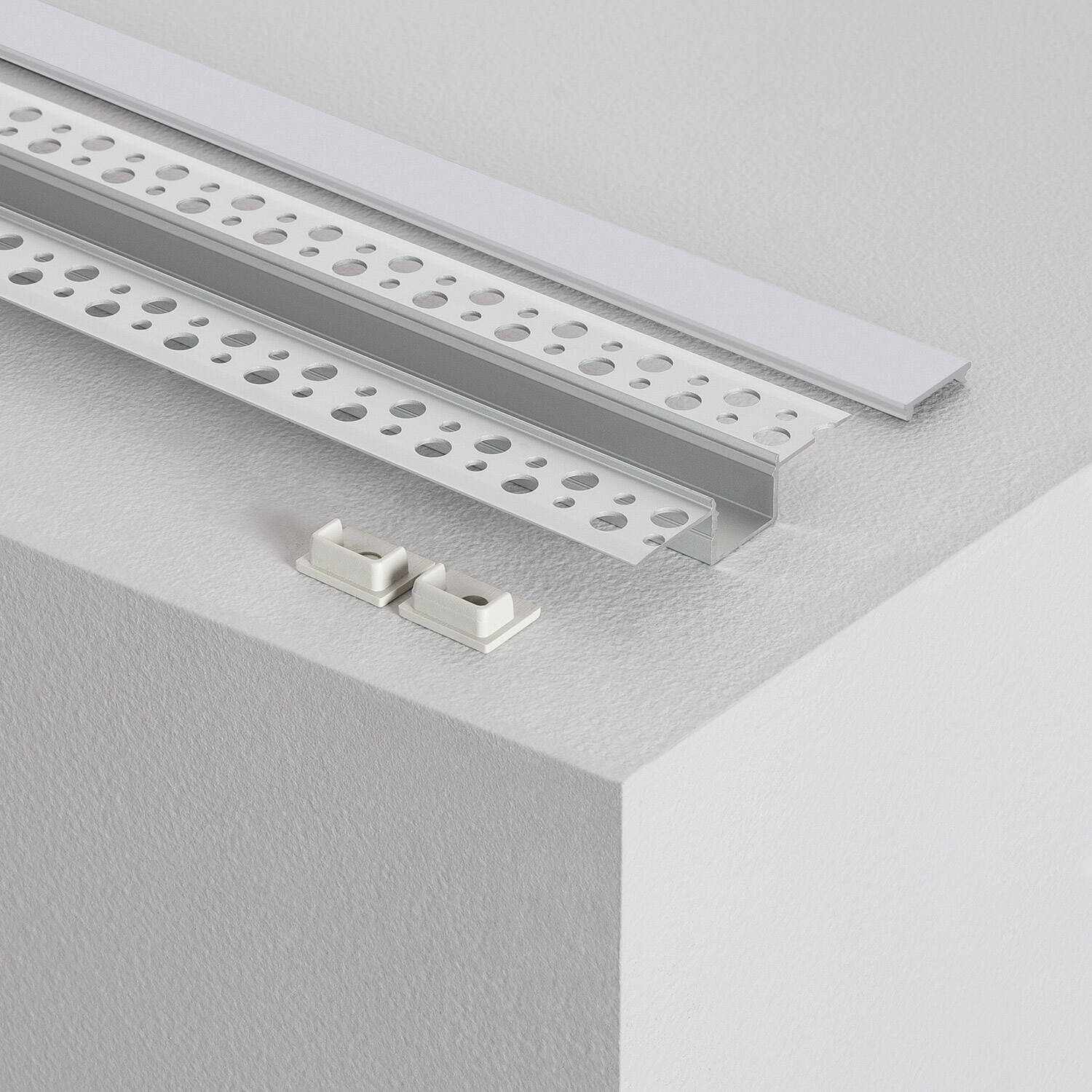 Perfil Aluminio Integrado en Escayola/Pladur para Tira LED hasta 15 mm con Tapa Continua