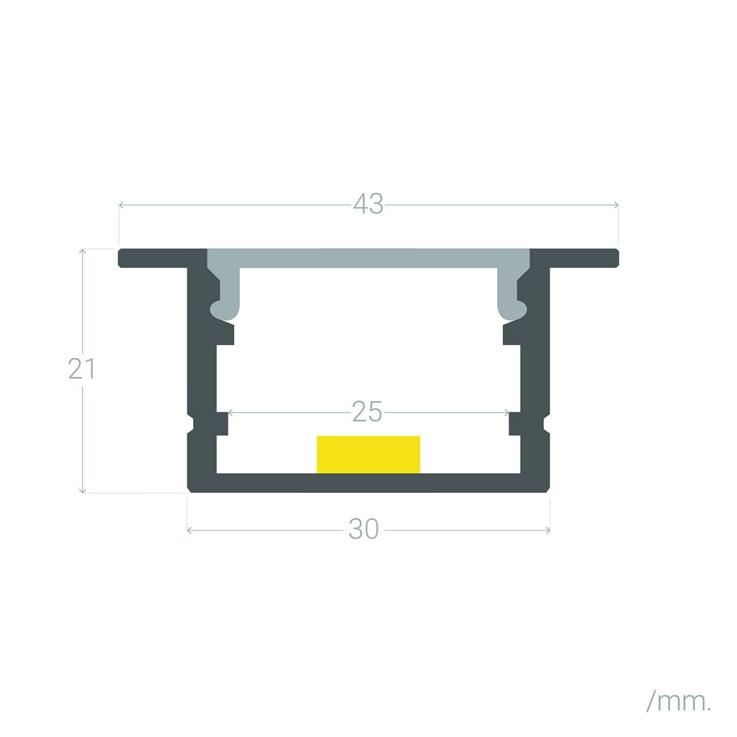 Perfil Aluminio Empotrable para Tiras LED hasta 25 mm con Tapa Continua