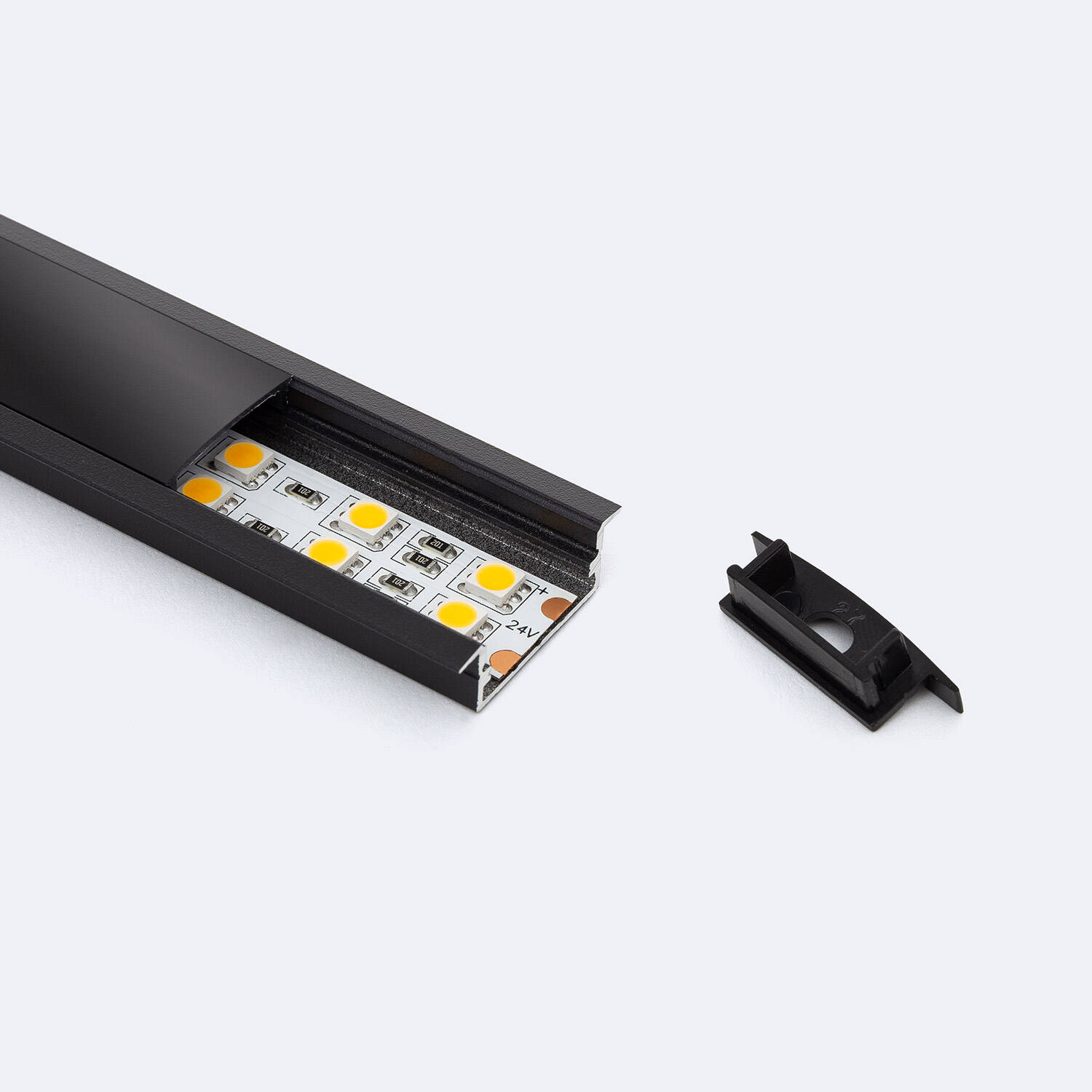 Descubre el Perfil de Aluminio Empotrable Lithos H18, diseñado para tiras LED de hasta 18 mm de ancho. Su estructura en aluminio negro ofrece una instalación empotrable elegante y resistente, ideal para ambientes interiores modernos. Incluye una tapa continua en negro traslúcido que difumina la luz de manera uniforme, creando ambientes cálidos y sofisticados sin deslumbramientos. Perfecto para iluminar estanterías, muebles o rincones decorativos con estilo y discreción. Además, cuenta con certificación RoHS y garantía de 3 años, asegurando calidad y durabilidad. Este perfil combina funcionalidad y diseño para integrar la iluminación LED de forma armoniosa en cualquier espacio, aportando un toque contemporáneo y profesional.