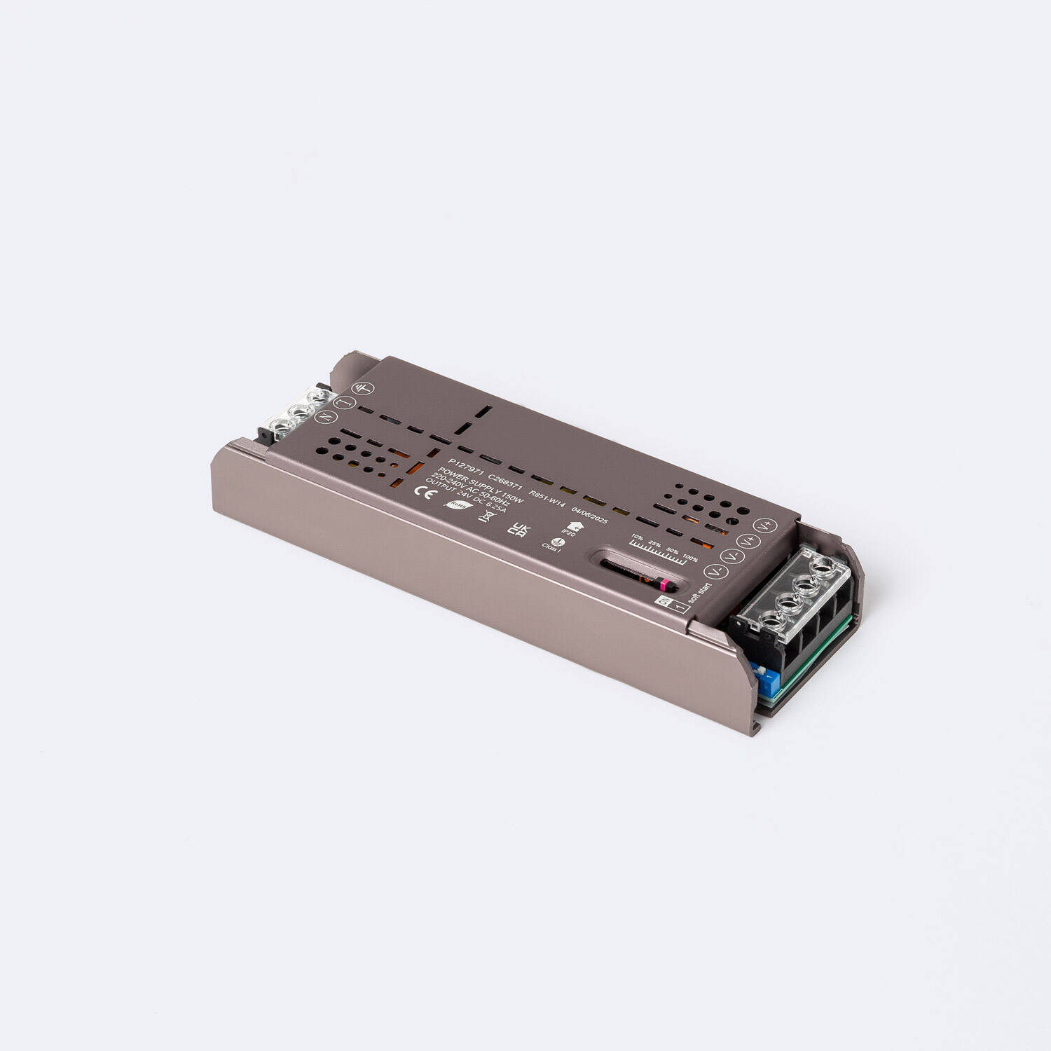 La Fuente de Alimentación Slim Regulable Fade PRO 24V DC ofrece una potencia de 150 W con una intensidad máxima de 6,25 A, ideal para aplicaciones interiores que requieren un control preciso de la intensidad. Fabricada en aluminio, destaca por su diseño compacto y robusto, con protección IP20 y capacidad para operar en un amplio rango de temperaturas desde -30 °C hasta 50 °C. Cuenta con protección contra sobretensiones de hasta 1 kV y un factor de potencia de 0.8, garantizando eficiencia y seguridad. Certificada con CE y RoHS, esta fuente asegura calidad y cumplimiento normativo. Además, dispone de regulación suave y una garantía de 3 años, perfecta para instalaciones profesionales exigentes.