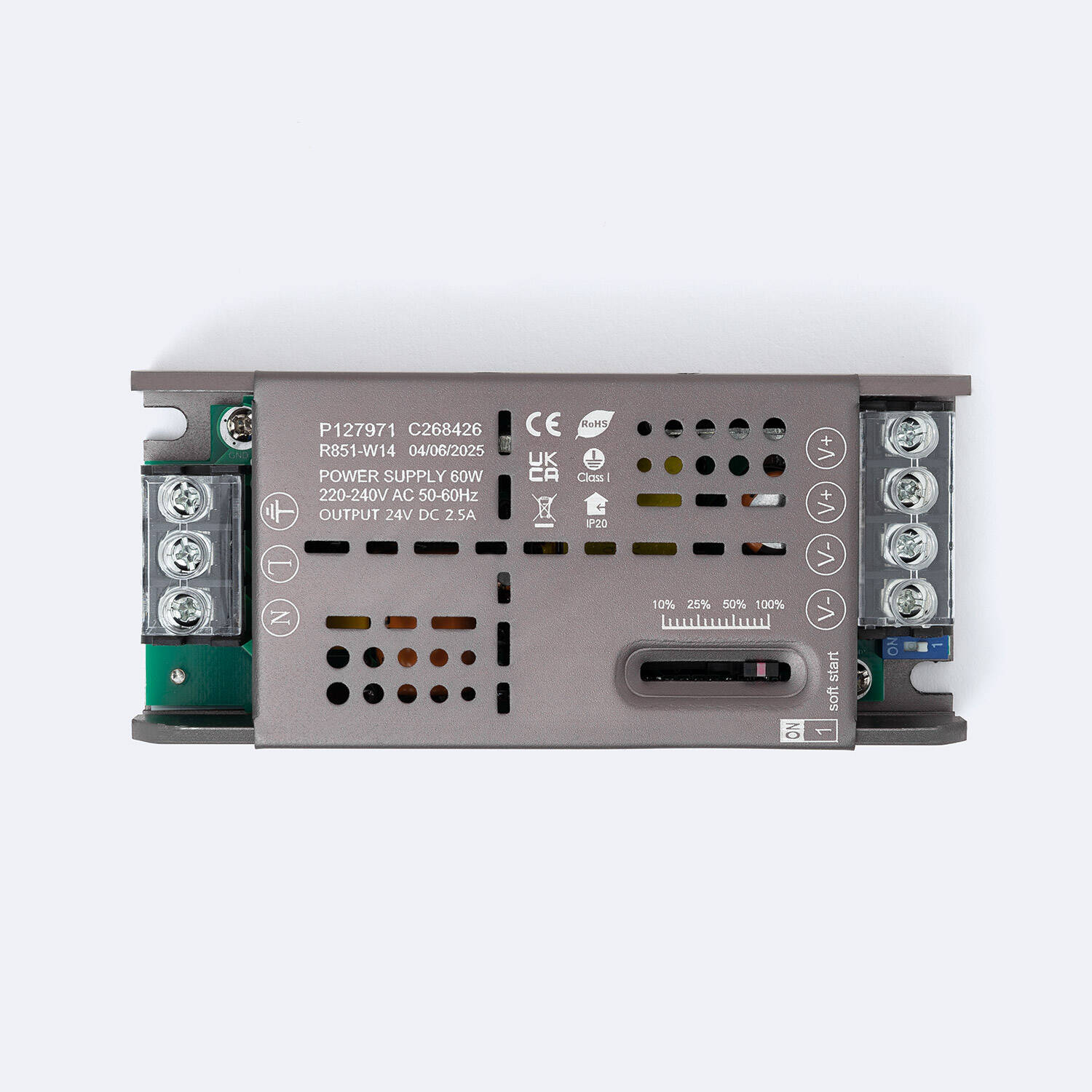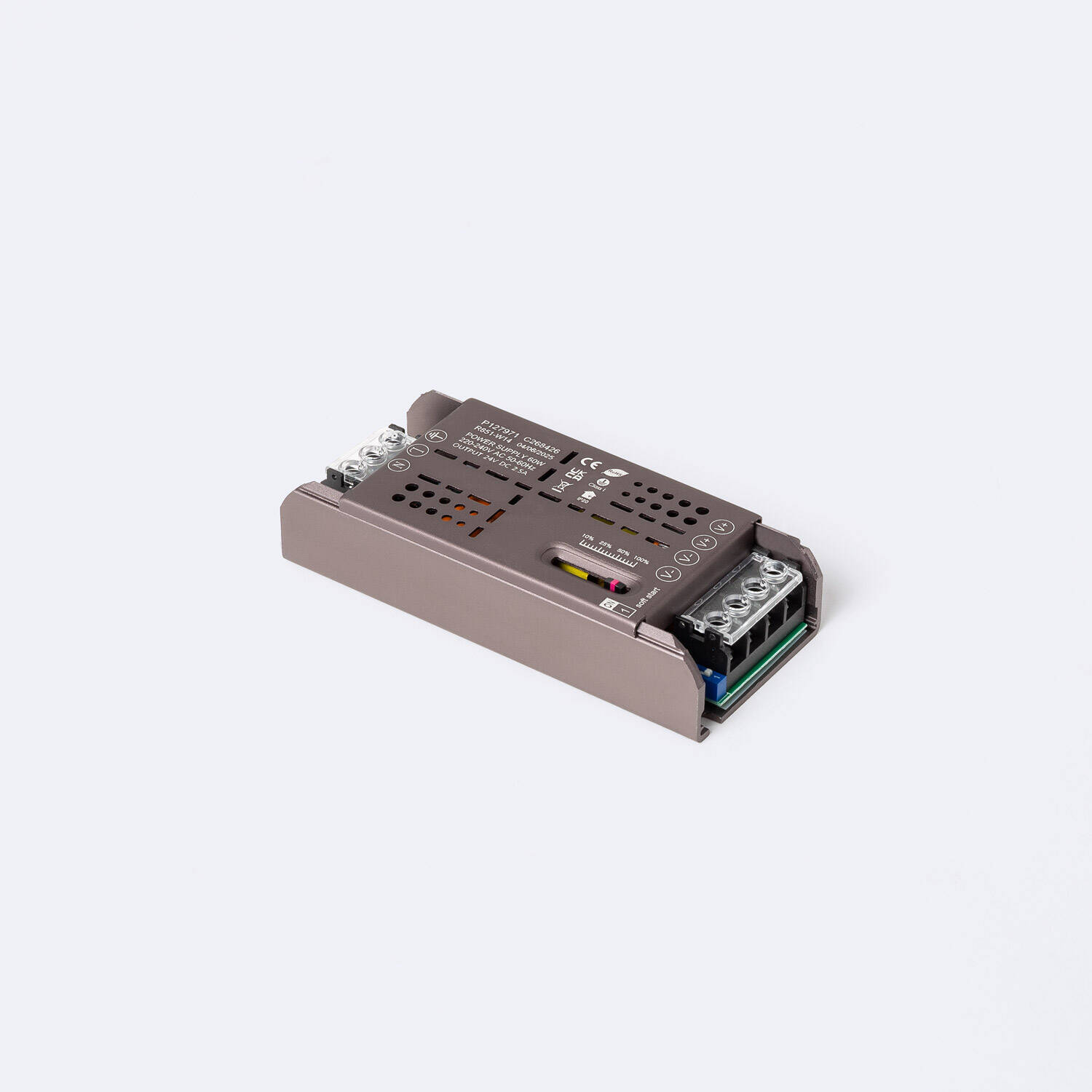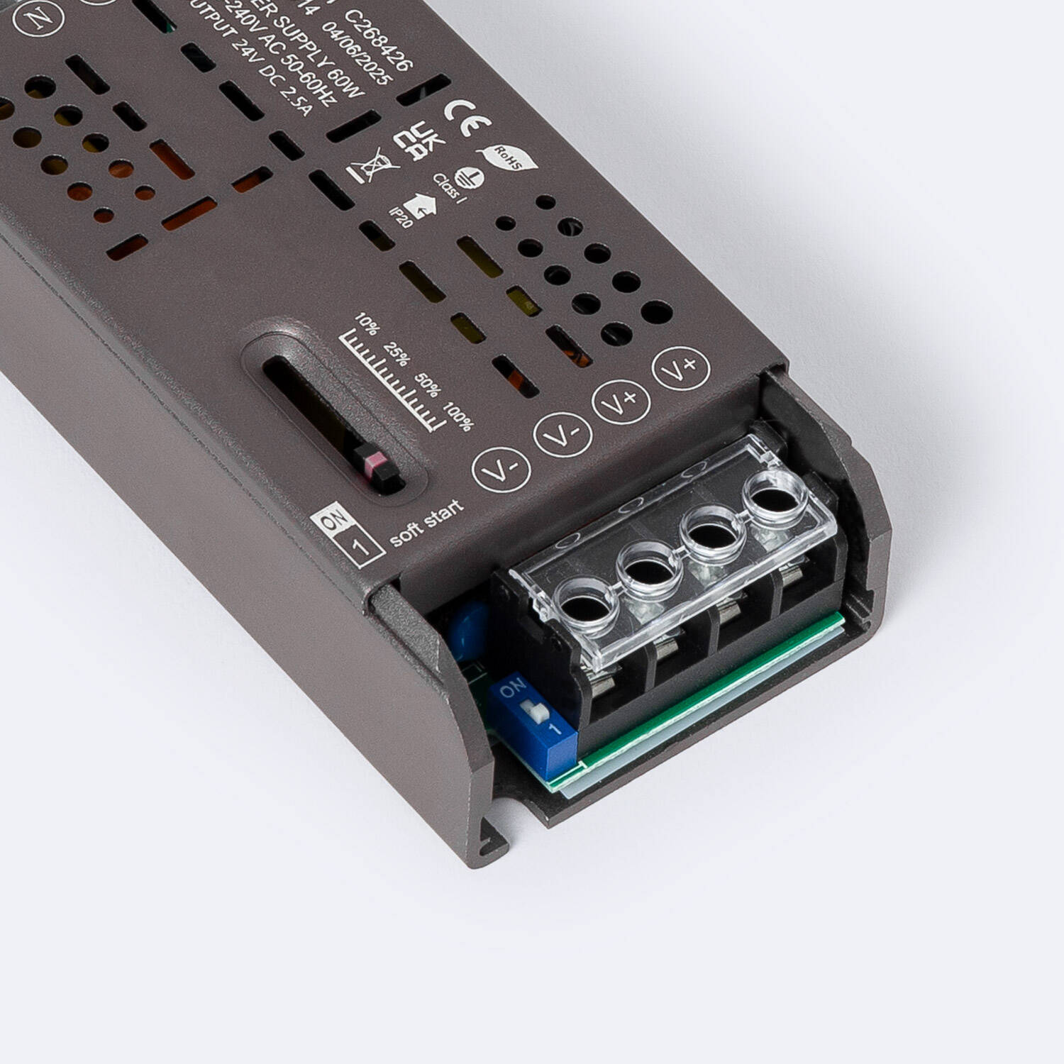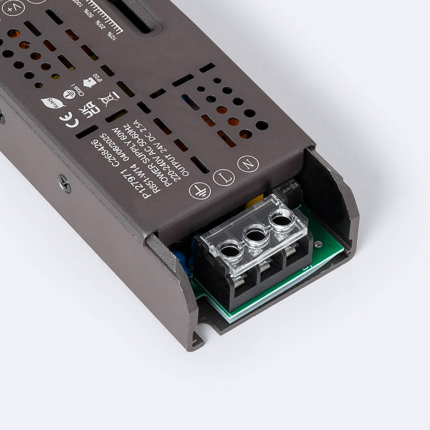 La Fuente de Alimentación Slim Regulable en Intensidad Fade PRO 24V DC ofrece una potencia de 60W y una corriente ajustable de hasta 2,5A, ideal para aplicaciones interiores que requieren un suministro estable y eficiente. Fabricada en aluminio, destaca por su diseño compacto y robusto, con protección IP20 y contra sobretensiones de hasta 1 kV, garantizando seguridad y durabilidad. Funciona en un rango amplio de temperaturas, desde -30 °C hasta 50 °C, y cuenta con certificaciones CE y RoHS que avalan su calidad. Su factor de potencia de 0.8 y tensión de entrada de 220-240V AC aseguran un rendimiento óptimo. Además, incluye regulación de intensidad para un control preciso y una garantía de 3 años, ofreciendo fiabilidad y versatilidad en instalaciones profesionales.