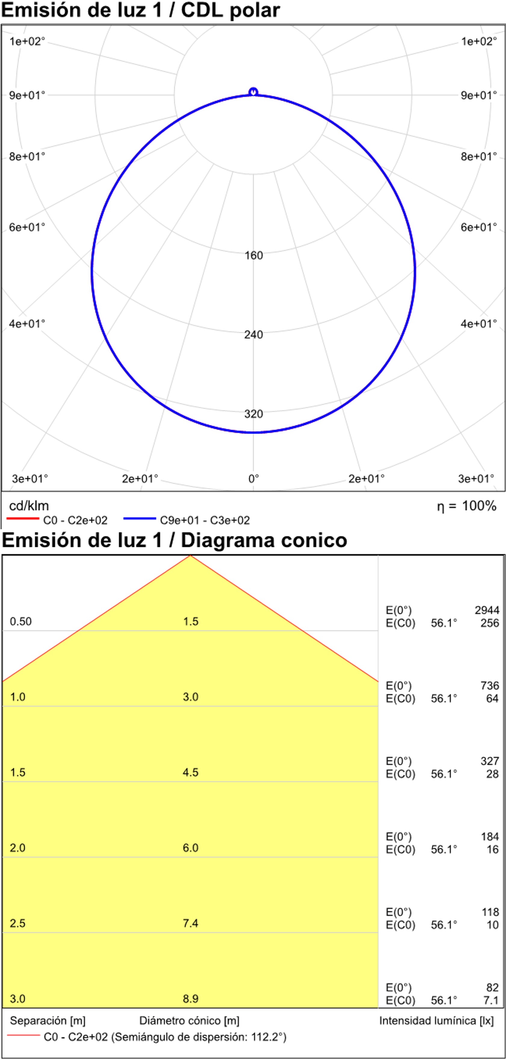 Especificaciones y datos fotométricos