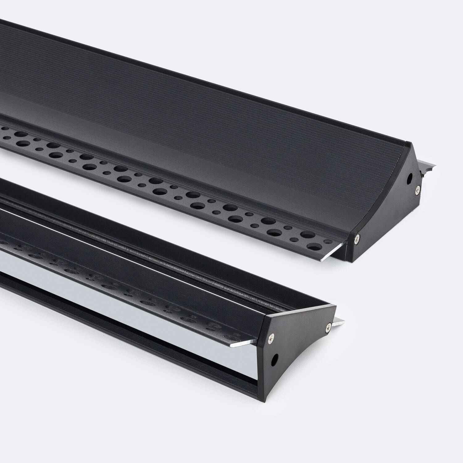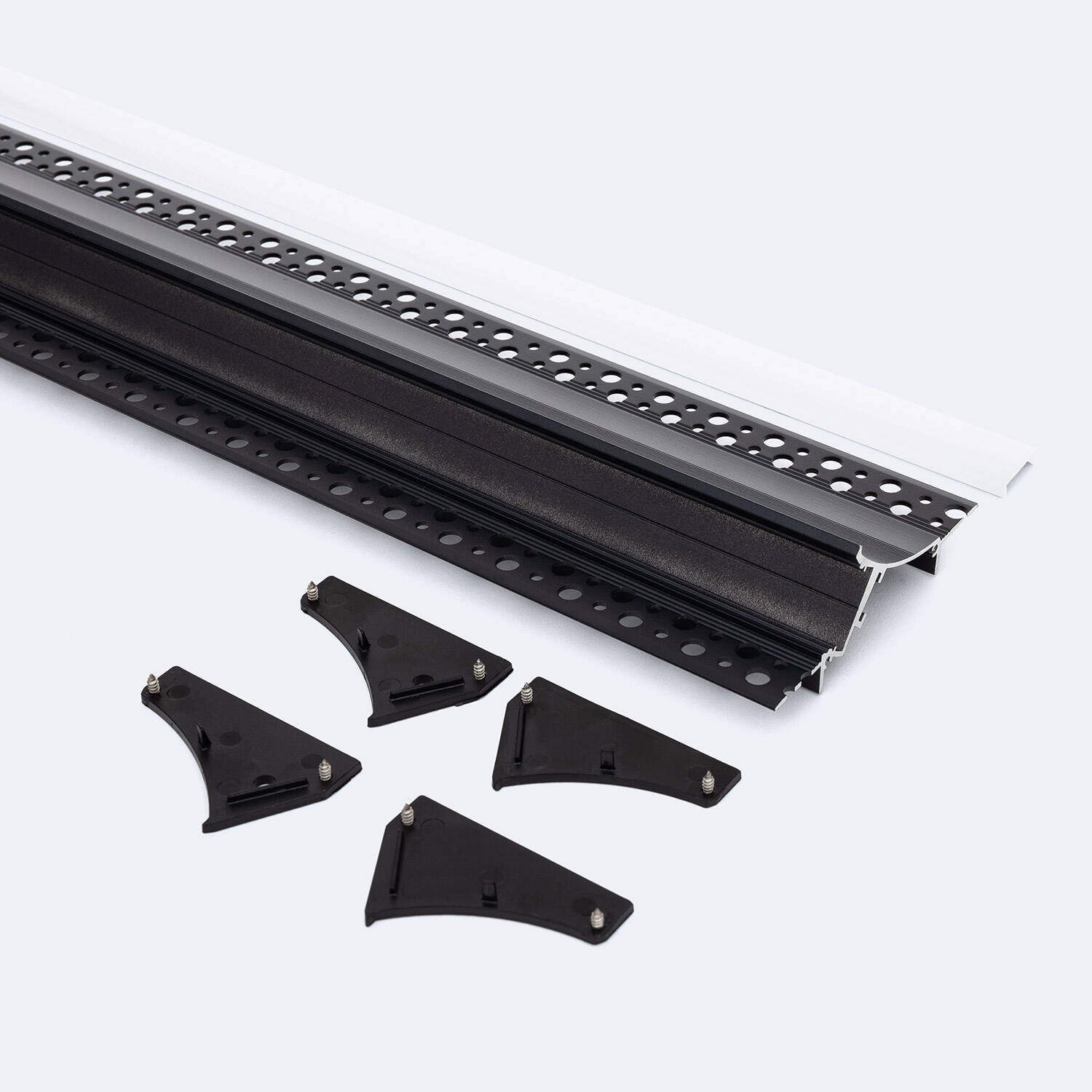 Este perfil de aluminio empotrable Lithos H20 está diseñado para integrar tiras LED de hasta 20 mm en escayola o pladur, ofreciendo una instalación limpia y discreta. Fabricado en aluminio resistente y acabado en color negro, incluye una tapa continua blanco traslúcida que difunde la luz de manera uniforme, creando ambientes modernos y elegantes. Su diseño curvado permite una iluminación indirecta que realza cualquier estancia interior con estilo. La tapa superior facilita la protección y acabado del sistema LED, garantizando durabilidad y un resultado profesional. Certificado bajo la normativa RoHS, este perfil asegura calidad y seguridad, con una garantía de 3 años que respalda su fiabilidad en proyectos de iluminación empotrada.