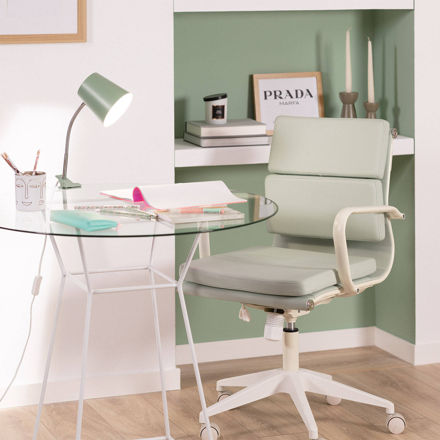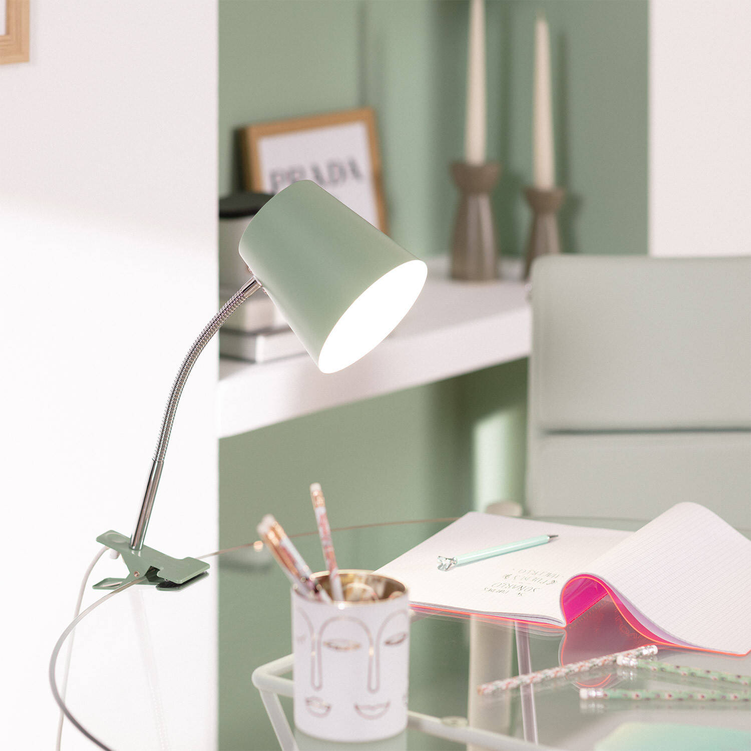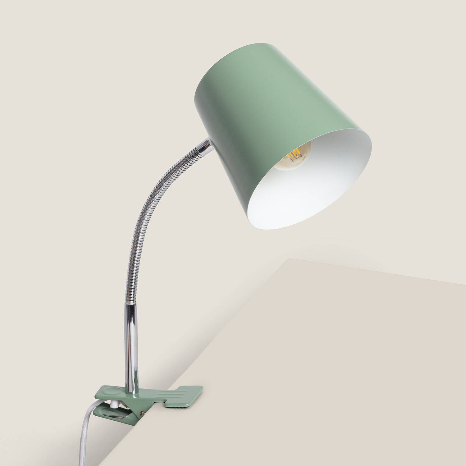 La lámpara flexo de escritorio Delavan combina funcionalidad y estilo con su diseño en metal verde celadón y pinza ajustable que se adapta fácilmente a cualquier superficie. Su brazo flexible permite dirigir la luz de forma precisa, ideal para tareas de estudio o trabajo. Compatible con bombillas E27 de hasta 40 W, ofrece una iluminación eficaz en interiores, con protección IP20 para mayor seguridad. Resistente a temperaturas entre -20 °C y 50 °C, garantiza durabilidad y estabilidad. Además, cuenta con certificaciones CE, RoHS y UKCA, y una garantía de 3 años que respalda su calidad. Un complemento práctico y elegante para cualquier espacio de trabajo o lectura.