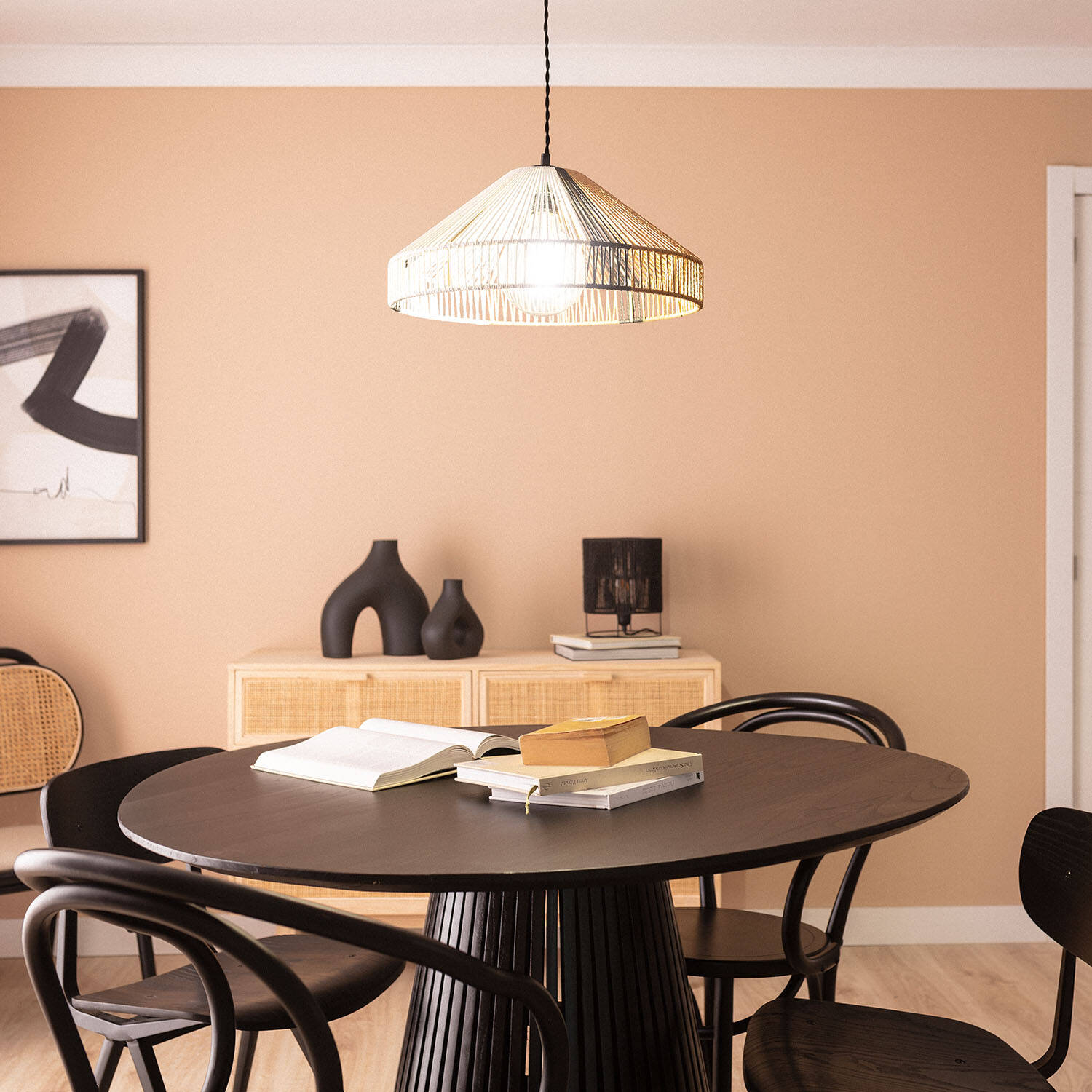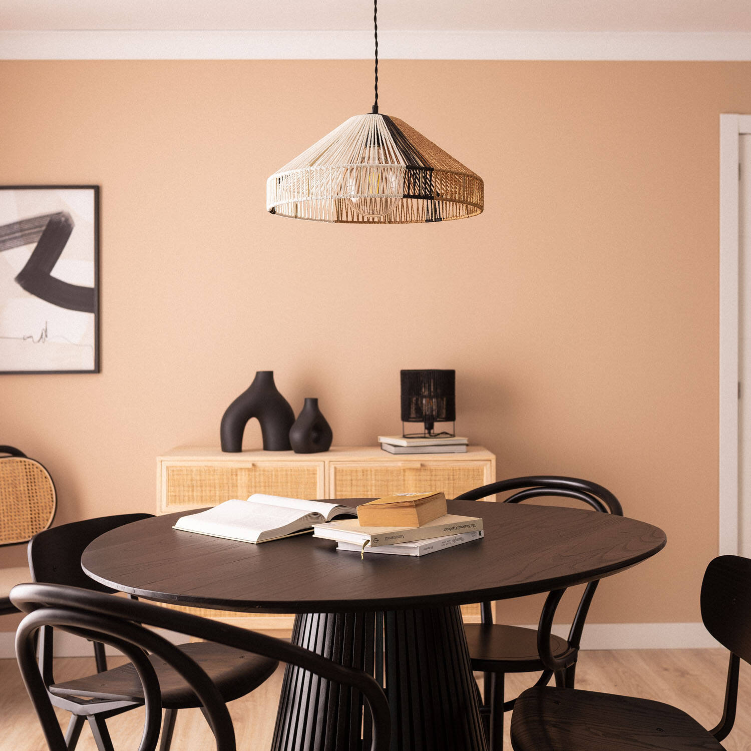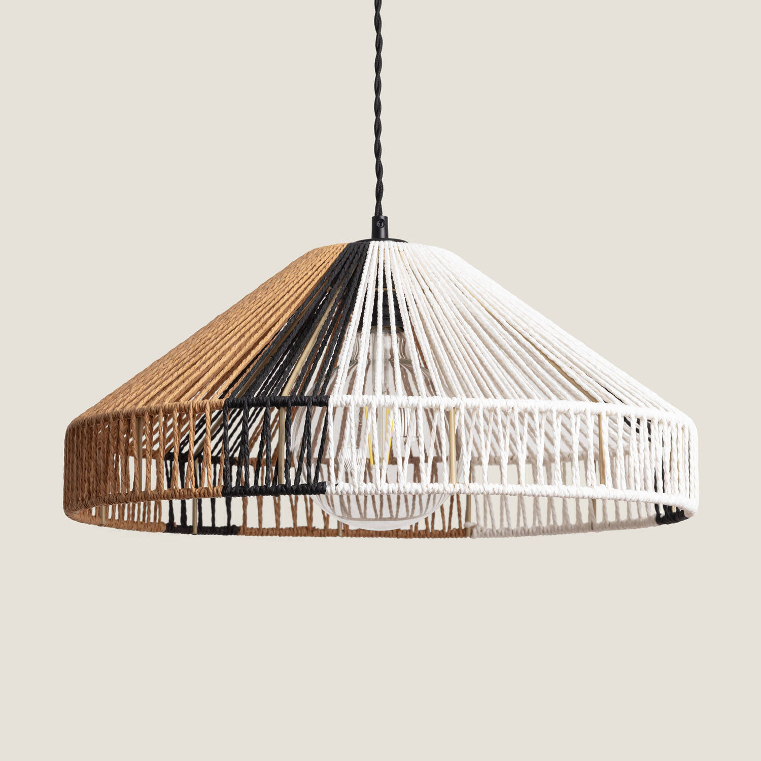 La lámpara colgante Dumas destaca por su diseño artesanal y elegante, elaborado en papel trenzado que aporta un toque natural y acogedor a cualquier espacio interior. Su estructura ligera y su acabado en tonos naturales, combinados con detalles en negro y blanco, crean un ambiente cálido y moderno. Compatible con bombillas E27 de hasta 40W (no incluidas), esta lámpara es ideal para salones, comedores o zonas de lectura. Su instalación colgante y su protección IP20 la hacen perfecta para interiores, funcionando sin problemas en un rango de temperatura de -20 °C a 50 °C. Además, cuenta con certificaciones CE, RoHS y UKCA, garantizando calidad y seguridad. Incluye 3 años de garantía.