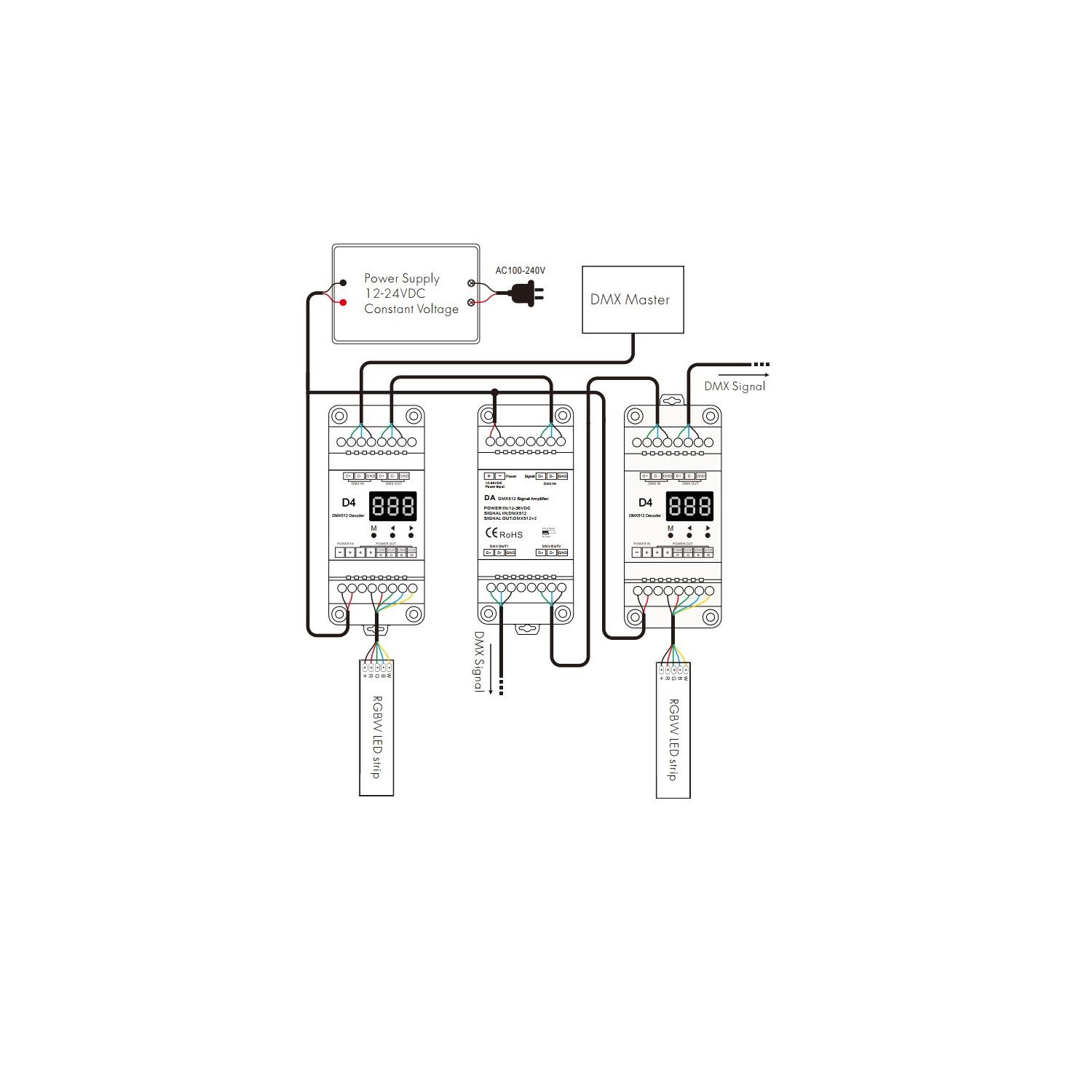 Amplificador DMX512 12-36V DC 2 canales para Carril DIN
