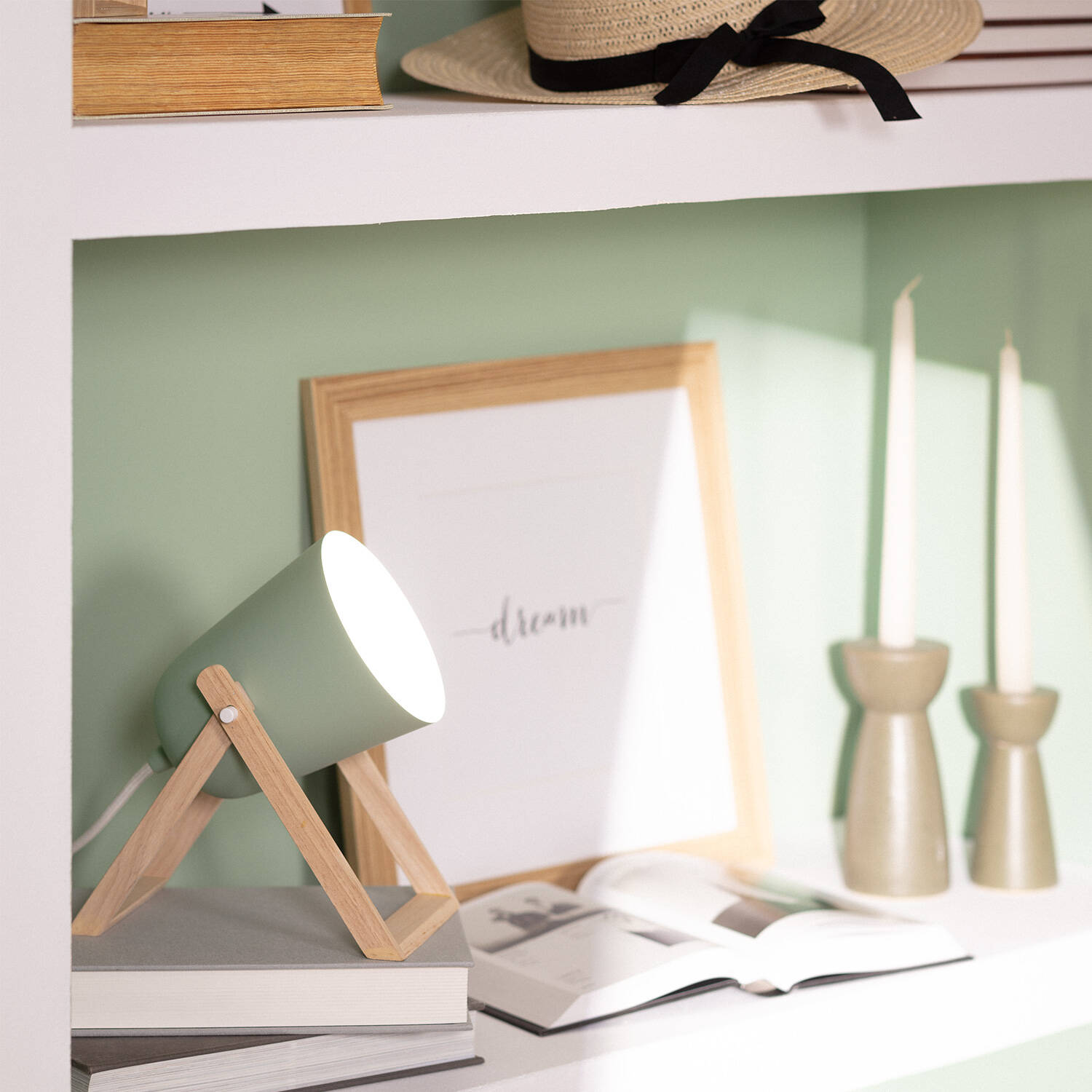 La lámpara de mesa Kiume combina diseño y funcionalidad en un elegante acabado verde celadón con estructura de madera natural y metal. Su estilo moderno y minimalista aporta calidez y sofisticación a cualquier espacio interior. Cuenta con casquillo E27, compatible con bombillas de hasta 40 W (no incluidas), y un práctico interruptor integrado para un encendido sencillo. Su construcción robusta y certificaciones CE, RoHS y UKCA garantizan seguridad y durabilidad. Ideal para ambientes que requieren una iluminación puntual y decorativa, soporta temperaturas de trabajo entre -20 °C y 50 °C. La lámpara Kiume es una opción versátil que aporta personalidad y confort a tu hogar u oficina, con 3 años de garantía incluida.