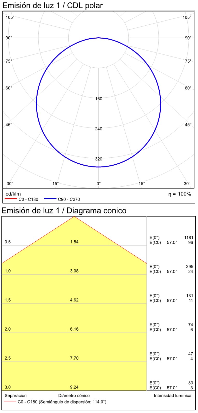 Especificaciones y datos fotométricos