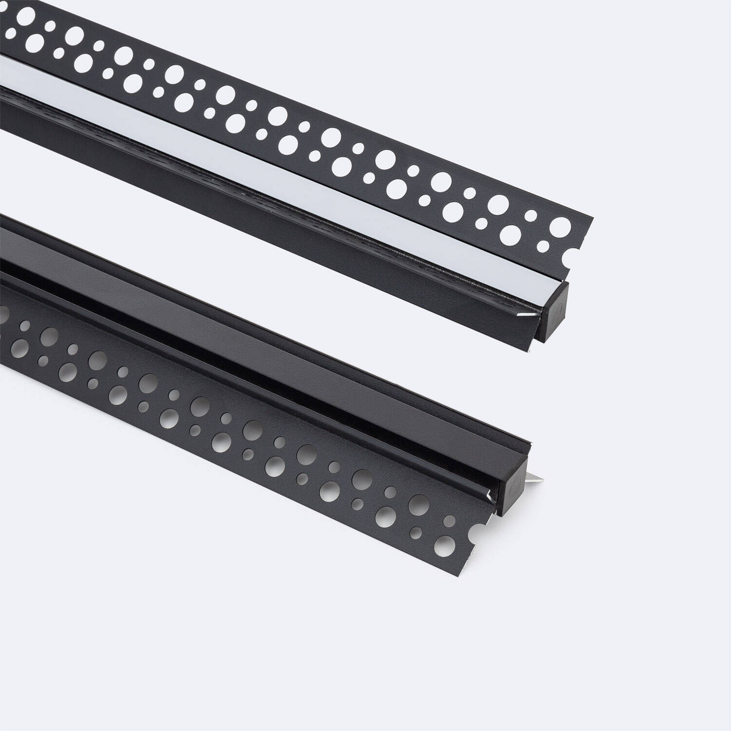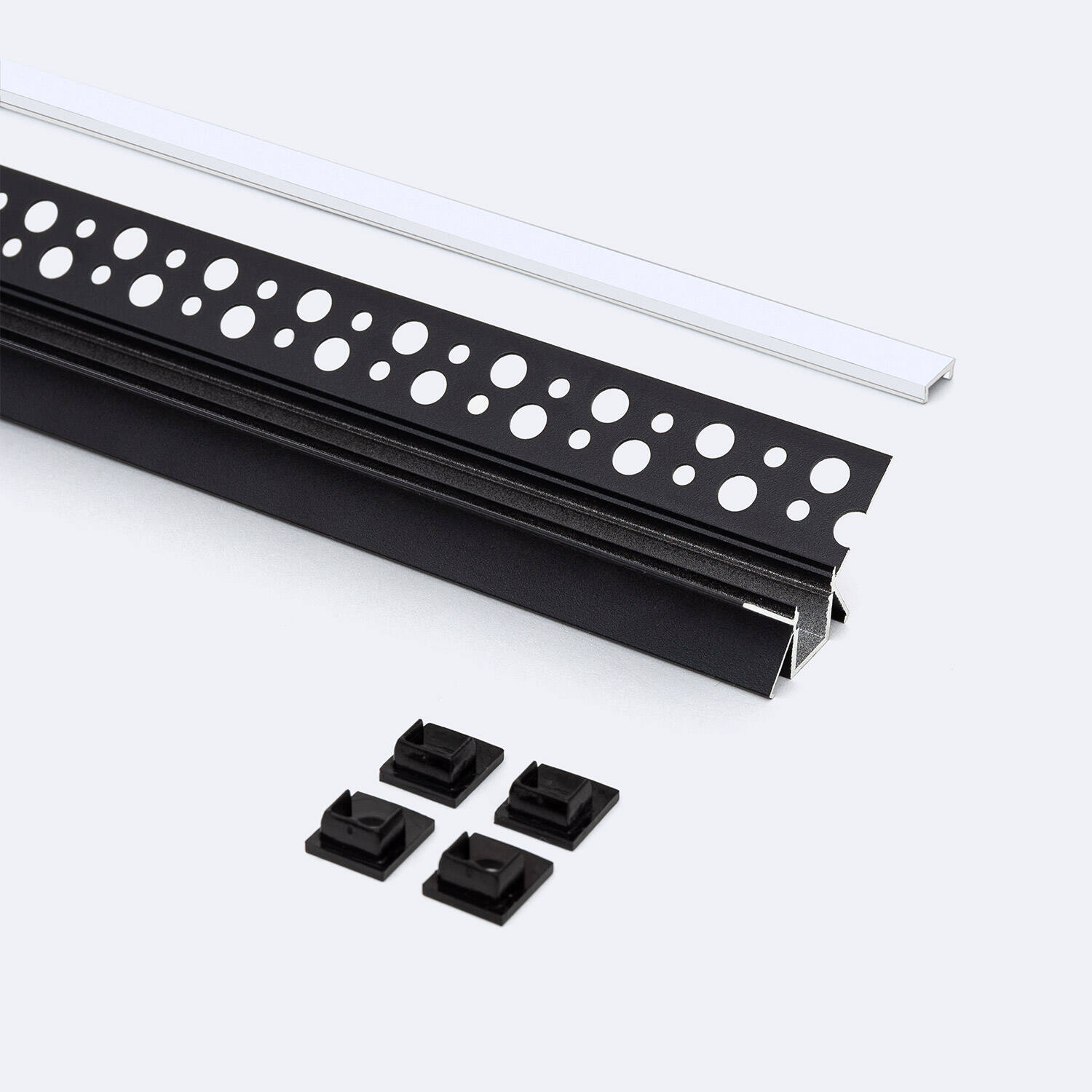 El Perfil de Aluminio Integrado para Escayola o Pladur en Esquina Interior es la solución perfecta para integrar tiras LED de hasta 9 mm con una instalación limpia y profesional. Fabricado en aluminio resistente y acabado en negro, incluye una tapa continua blanco traslúcido que difunde la luz de manera uniforme, evitando deslumbramientos. Su diseño permite una integración perfecta en esquinas interiores, aportando un acabado moderno y discreto. Compatible con la serie Argos H8, cuenta con una garantía de 3 años y certificación RoHS, garantizando calidad y seguridad. Ideal para proyectos de iluminación interior que buscan funcionalidad y estética en un solo perfil.