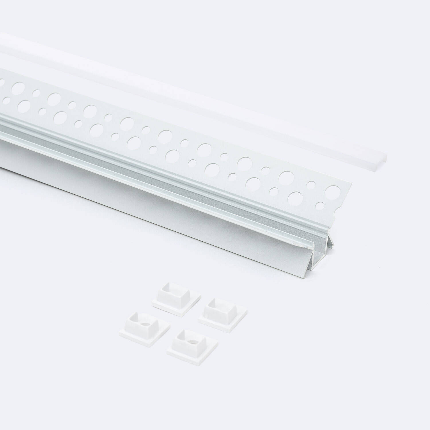 El Perfil de Aluminio Integrado para Escayola o Pladur en esquina interior es la solución perfecta para una iluminación LED discreta y elegante. Diseñado para alojar tiras LED de hasta 9 mm de ancho, cuenta con una tapa continua blanco traslúcido que difunde la luz de forma uniforme, evitando deslumbramientos. Fabricado en aluminio blanco, se integra perfectamente en esquinas interiores, aportando un acabado limpio y profesional. Su instalación es sencilla y está pensado para uso en interiores, garantizando durabilidad y resistencia con certificación RoHS y una garantía de 3 años. Ideal para proyectos de iluminación moderna que buscan funcionalidad y estética en espacios residenciales o comerciales.