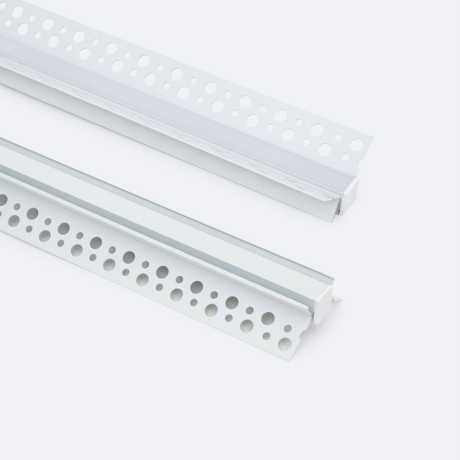 Perfil Aluminio Integrado en Escayola/Pladur Esquina Interior Tira LED hasta 9 mm con Tapa Continua