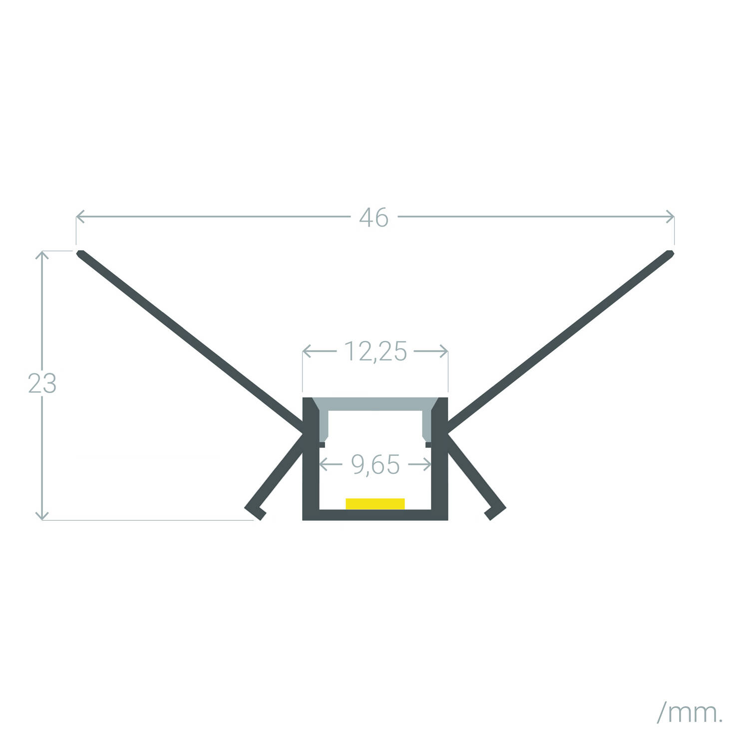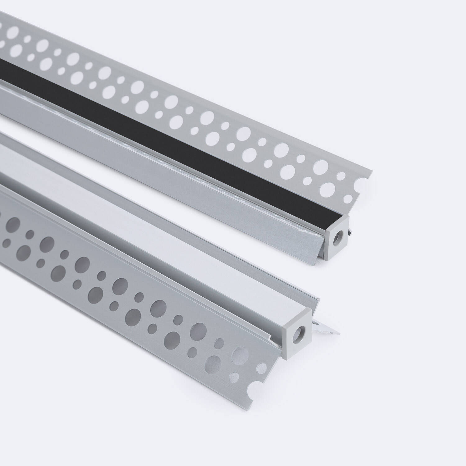 Perfil Aluminio Integrado en Escayola/Pladur Esquina Interior Tira LED hasta 9 mm con Tapa Continua