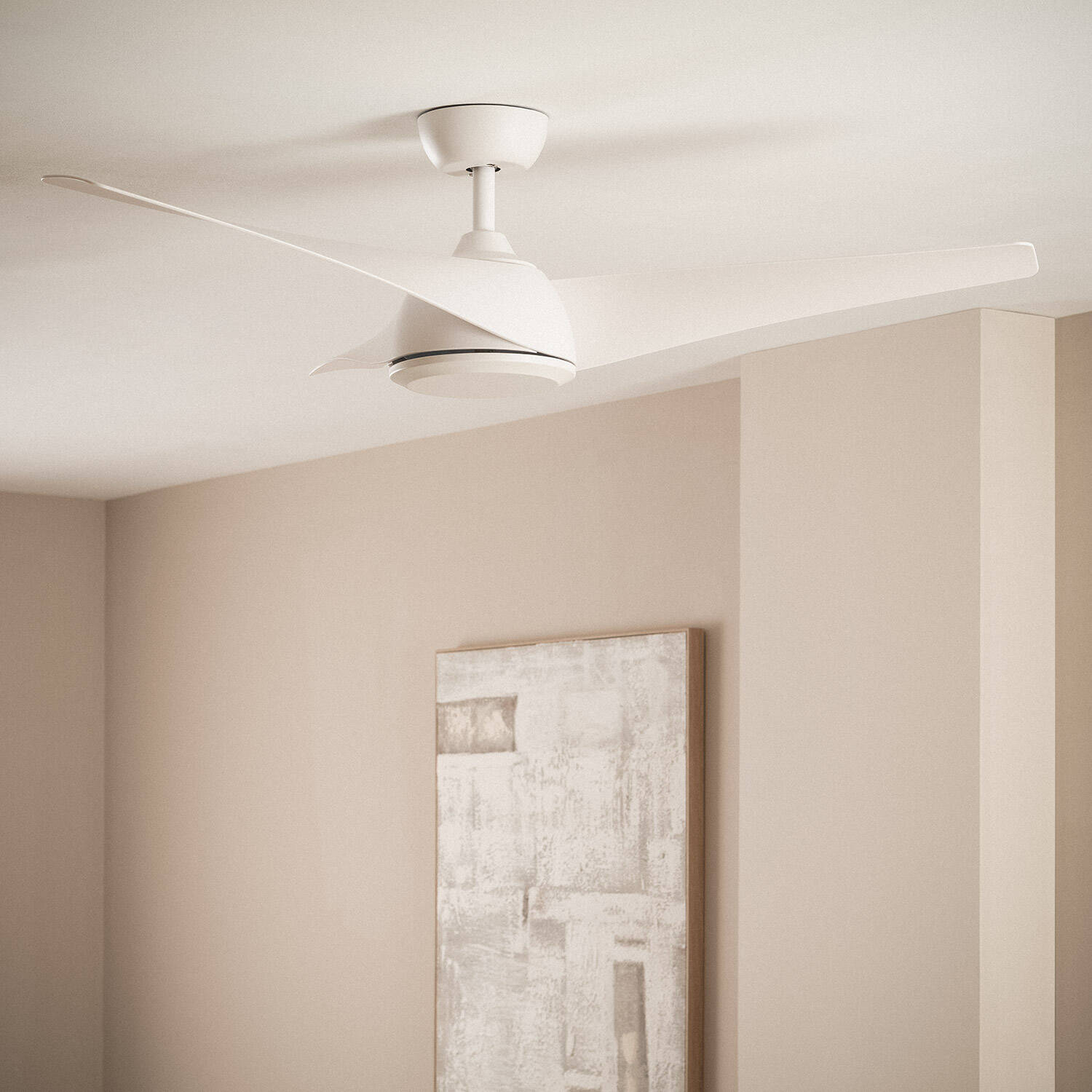 El ventilador de techo silencioso Eubea de TECHBREY, con un diámetro de 132 cm, es ideal para espacios grandes de más de 20 m². Equipado con un motor DC de 45 W, ofrece un funcionamiento eficiente y silencioso, con niveles de sonido entre 24 y 42 dB y seis velocidades ajustables (102-196 RPM). Su diseño en blanco y material ABS aporta un toque moderno y elegante, mientras que su instalación superficial y mando a distancia facilitan su uso y control. Cuenta con modo verano/invierno para adaptarse a cualquier estación y soporta temperaturas de trabajo entre -20 °C y 50 °C. Certificado CE, RoHS y UKCA, garantiza calidad y seguridad, respaldado por una garantía de 3 años.