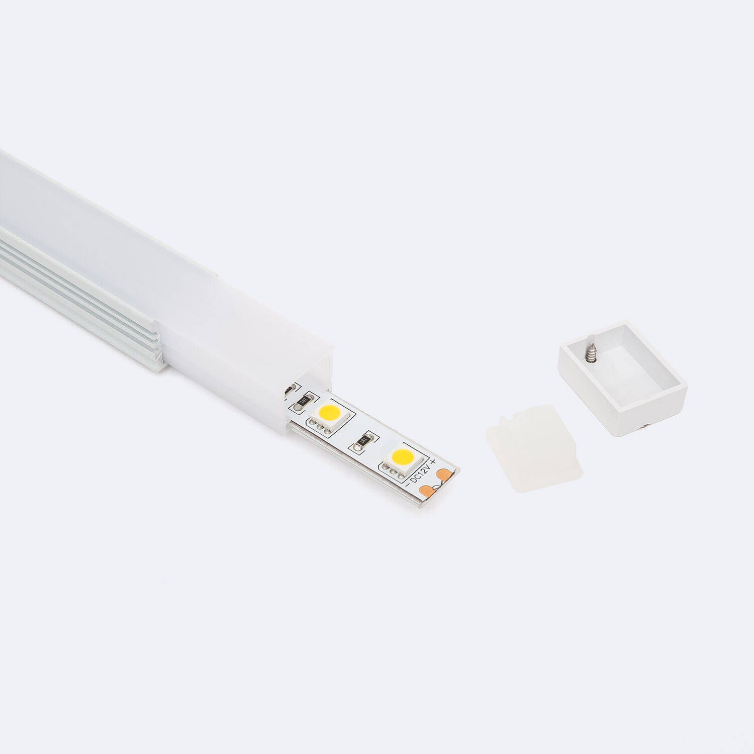 El Perfil de Aluminio Estanco IP65 para superficie de 2 metros es la solución ideal para instalar tiras LED de hasta 10 mm de ancho, garantizando una protección total contra el polvo y la humedad gracias a su certificación IP65. Fabricado en aluminio resistente y acabado en blanco, incluye una tapa superior blanco traslúcida que difunde la luz de manera uniforme, evitando deslumbramientos. Pertenece a la serie Terra H10 y cuenta con una garantía de 3 años, asegurando calidad y durabilidad. Su diseño compacto y estanco permite su uso tanto en interiores como en exteriores, facilitando la instalación en superficies diversas y protegiendo la tira LED para un rendimiento óptimo y seguro.