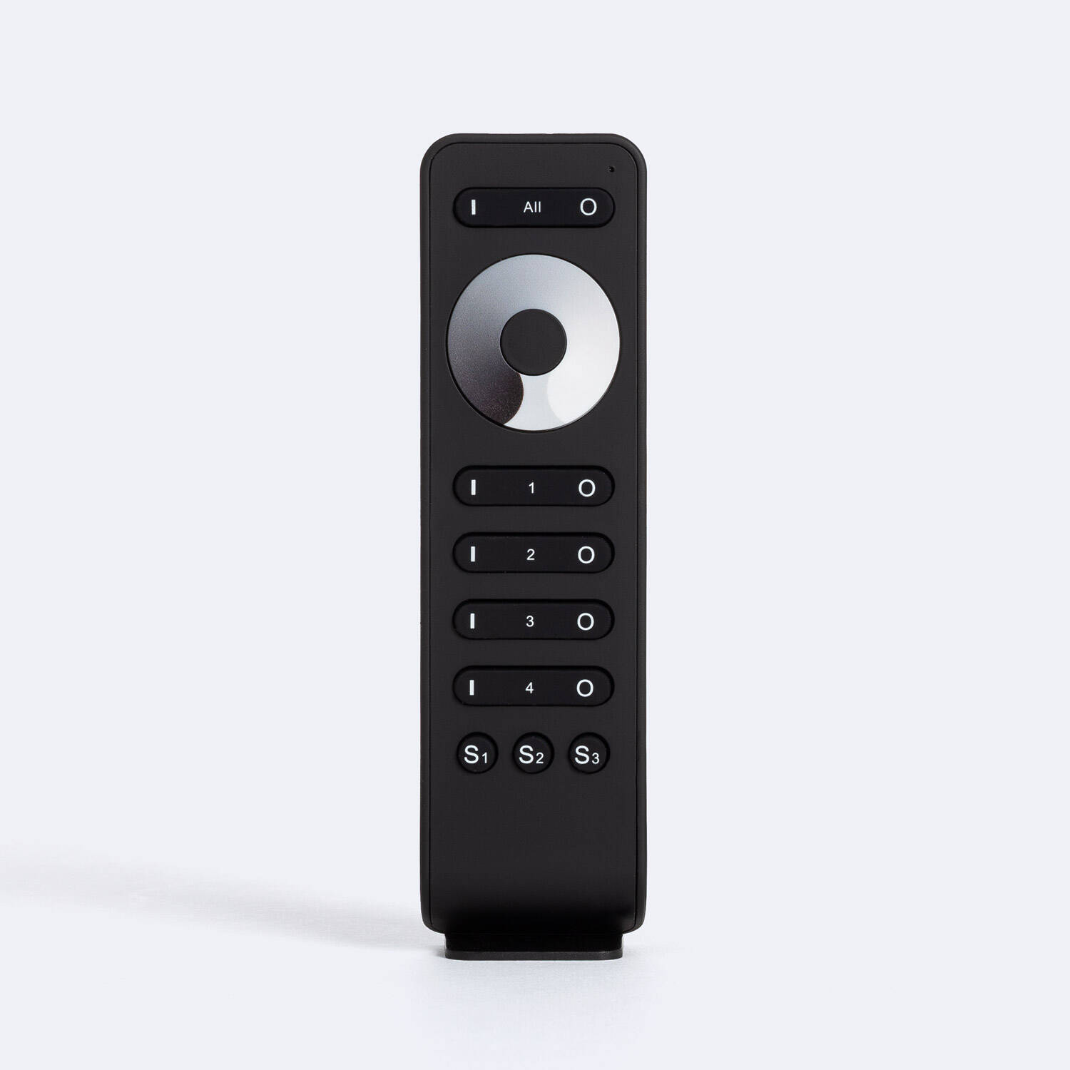 El mando RF para regulador monocolor 4 zonas es un control remoto compacto y elegante en color negro, fabricado en resistente material PC. Diseñado para gestionar hasta cuatro zonas de iluminación monocolor, permite un ajuste sencillo y preciso de la intensidad lumínica, facilitando ambientes personalizados y confortables. Con certificaciones CE y RoHS, garantiza calidad y seguridad en su uso. Su diseño ergonómico incluye botones intuitivos para encendido, apagado y selección de zonas, además de funciones adicionales para un control versátil. Ideal para instalaciones en interiores, cuenta con protección IP20 y una garantía de 3 años que asegura durabilidad y fiabilidad. Un accesorio imprescindible para optimizar el control de la iluminación en cualquier espacio.