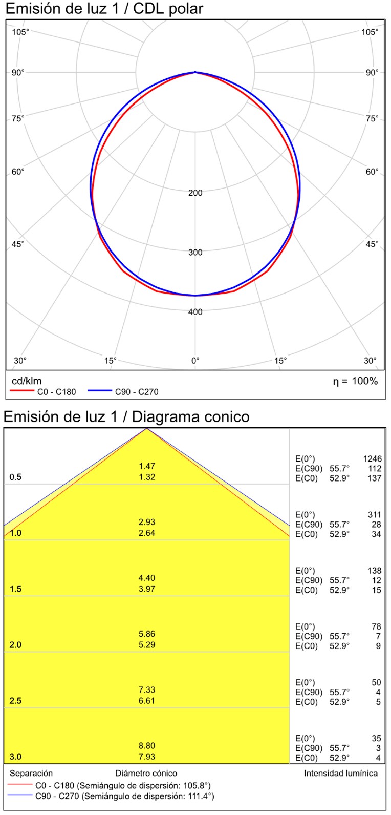Especificaciones y datos fotométricos