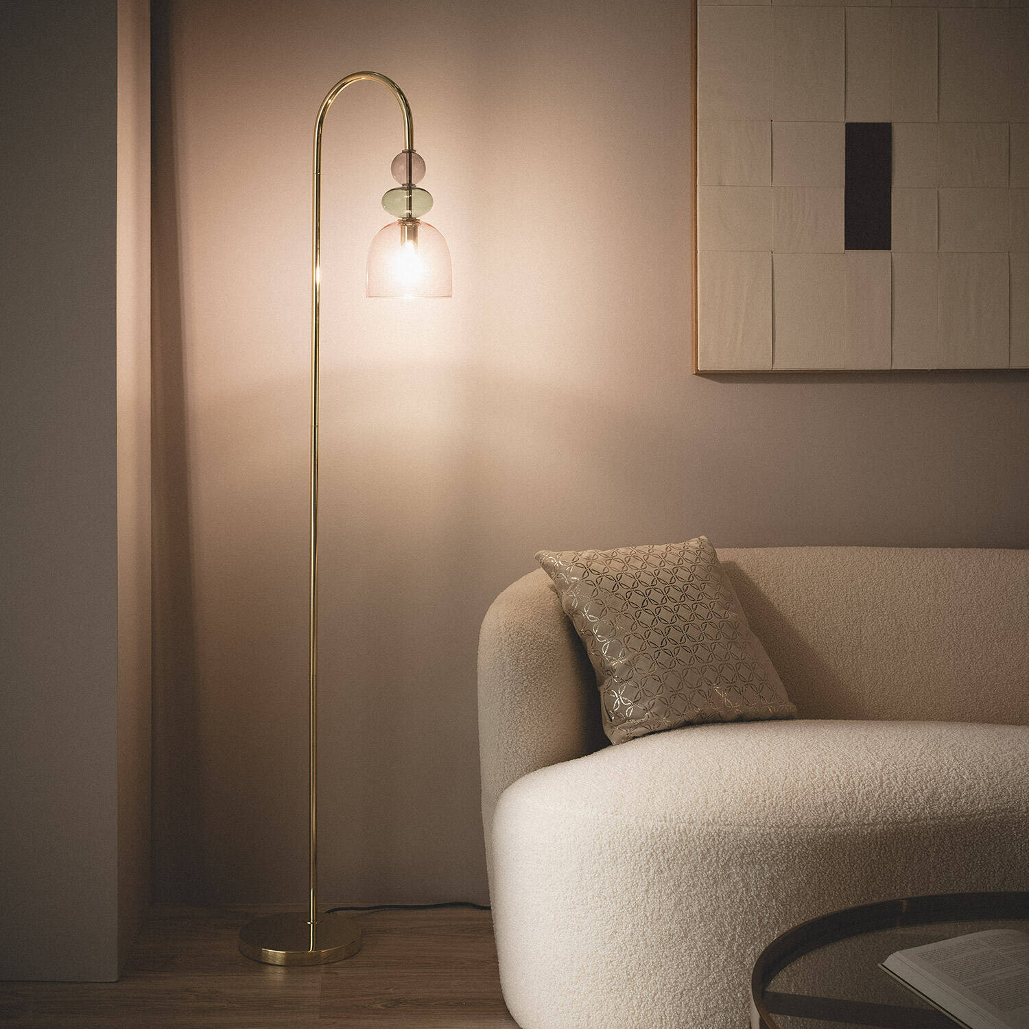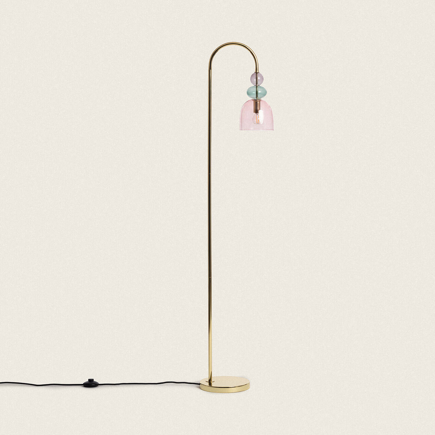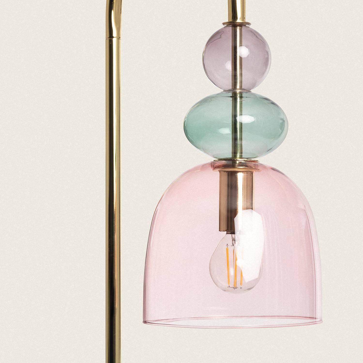 La lámpara de pie Baudelaire combina metal dorado y cristal en una pieza que reinterpreta el glamour vintage con un toque moderno. Su estructura esbelta y elegante sostiene una pantalla de cristal en tonos rosa y verde, que aporta frescura y personalidad a cualquier estancia. Ideal para interiores, esta lámpara ofrece una luz cálida y ambiental gracias a su casquillo E14 (bombilla no incluida). Diseñada para resistir temperaturas entre -20 °C y 50 °C, destaca por su estilo sofisticado y atemporal, perfecto para quienes buscan iluminar con carácter y elegancia. Cuenta con certificaciones CE, RoHS y UKCA, y una garantía de 3 años que asegura calidad y durabilidad.