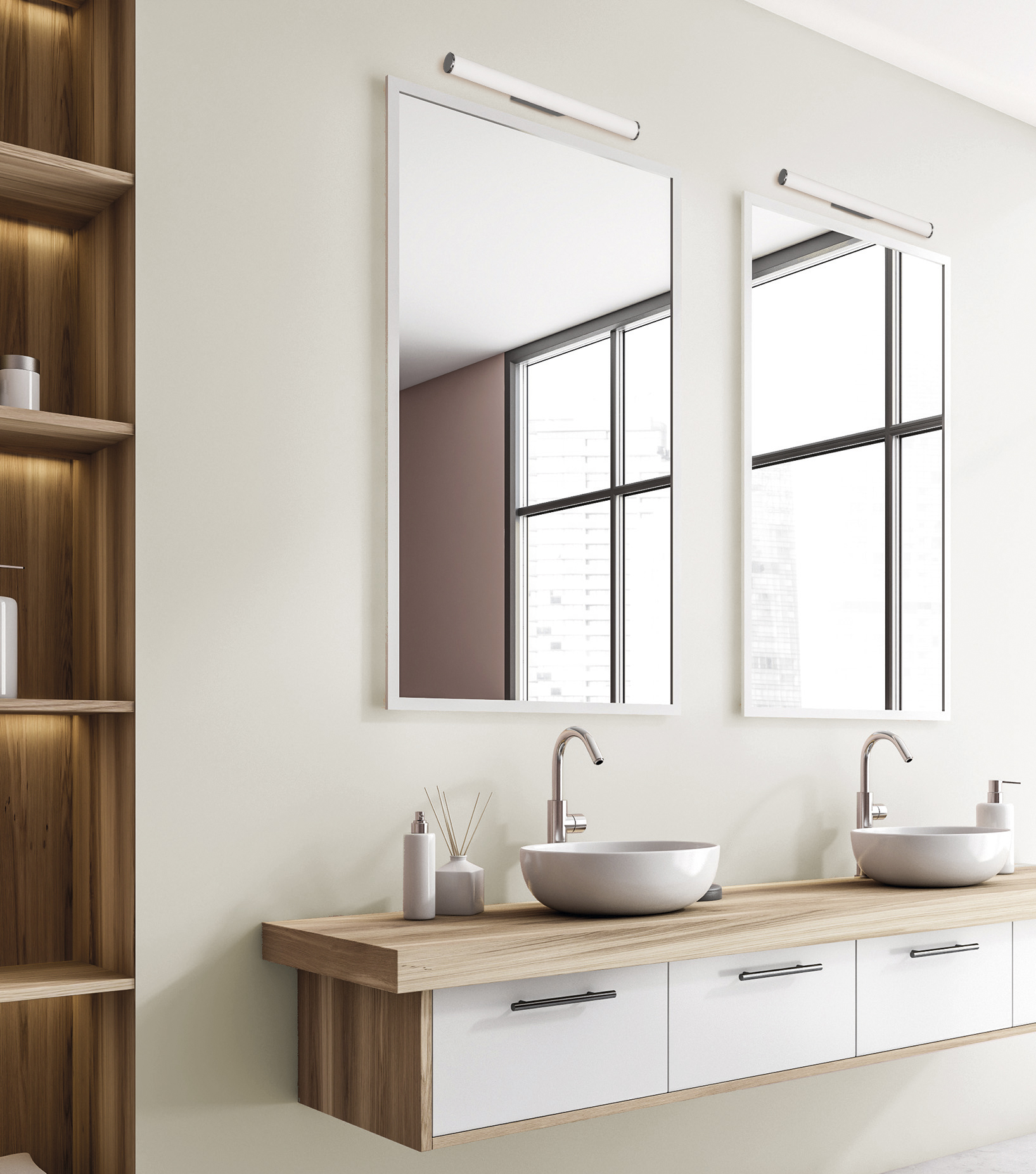 Ura Aplique 600mm Opal/Cromo, LED 19W 1780lm, CRI90 CL.II IP44, 3000K-4000K Slide Switch