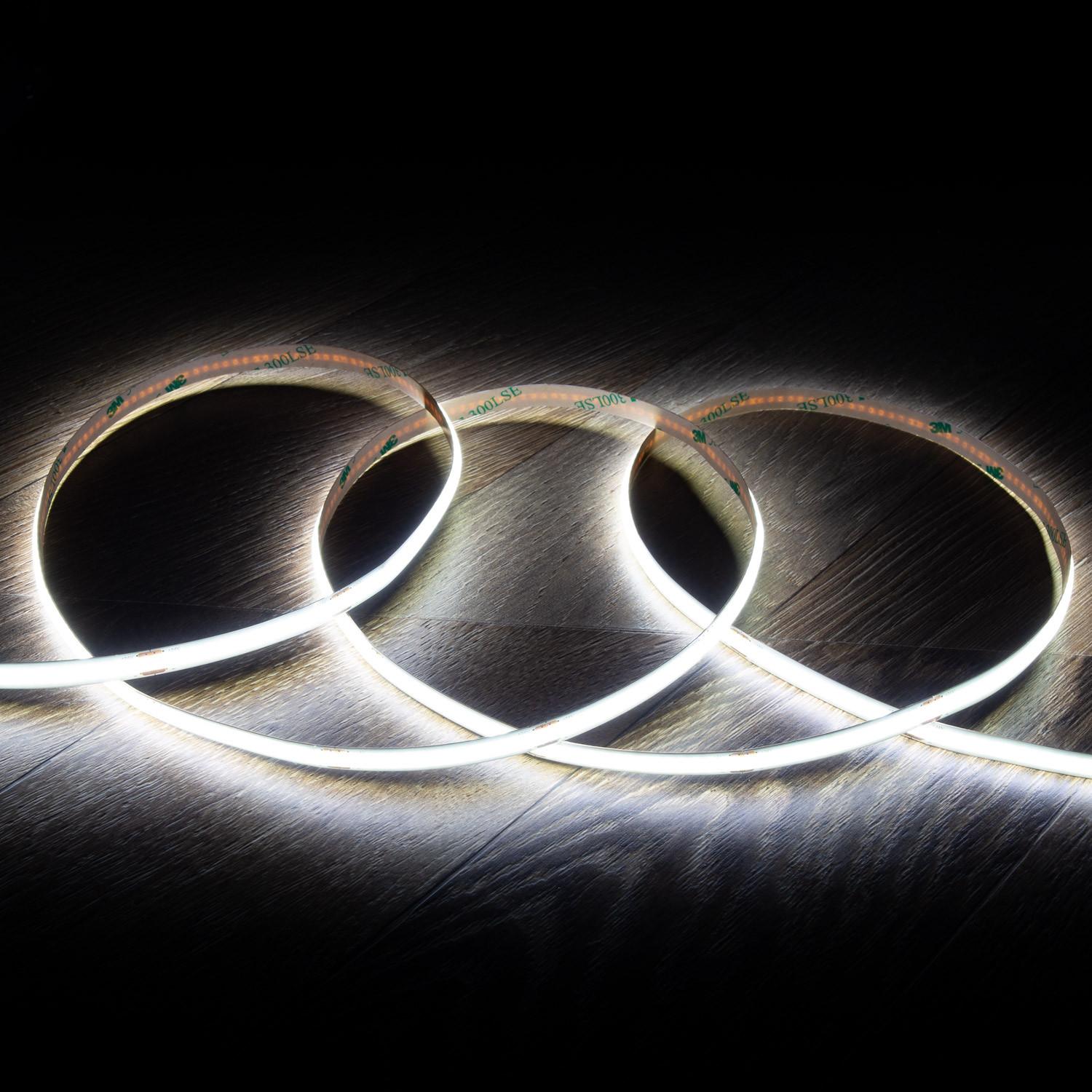 Tira LED 24V COB 320 LED/m 5m 10W/m 1000lm/m Ancho 8mm Corte 5cm IP20 CRI90
