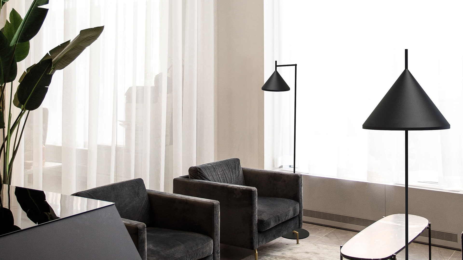 La pantalla de aluminio con un diseño básico en forma de cono es la protagonista de la colección Sutton. Con tres diámetros diferentes: 220, 350 y 500 mm, las tres pantallas comparten la misma tija superior, que estabiliza la lámpara en su horizontalidad. Toda la colección se fabrica en diferentes acabados lacados en epoxi y su fuente lumínica es una bombilla LED. Su ligera pantalla metálica queda suspendida de forma elegante y aporta personalidad a cualquier ambiente.