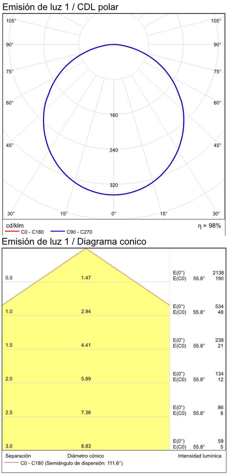 Especificaciones y datos fotométricos