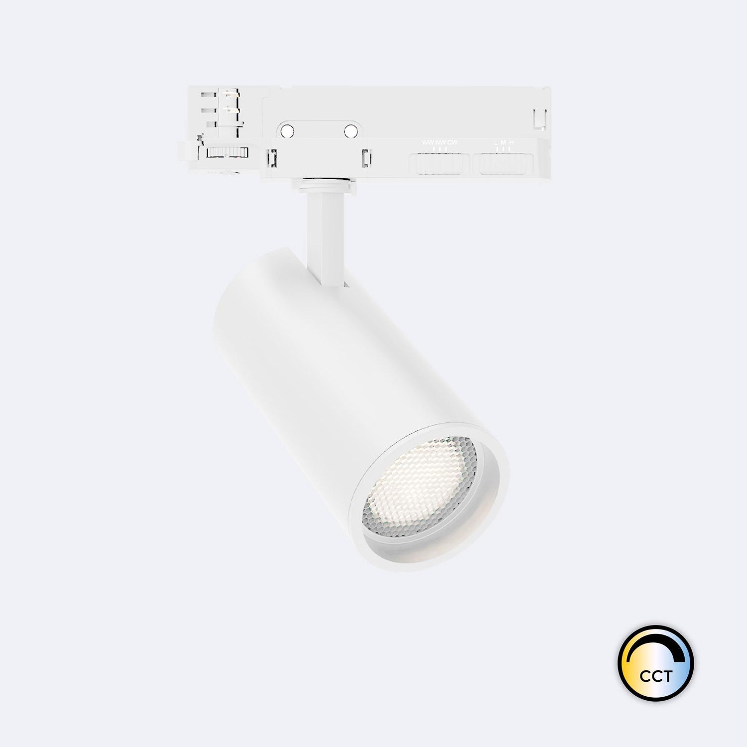 Foco Carril LED Trifásico 30W Fasano Antideslumbramiento CCT Seleccionable Regulable DALI Blanco