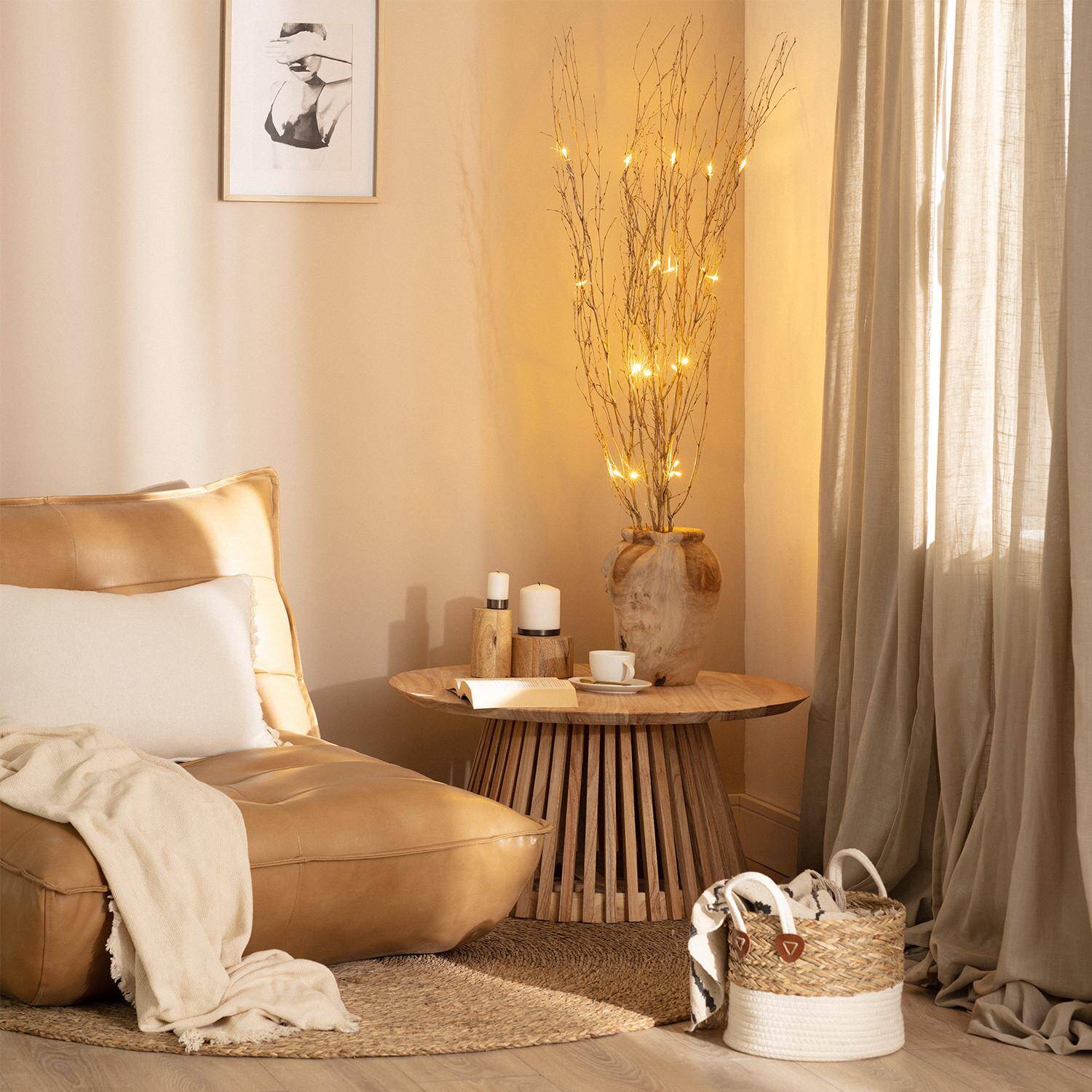 Las Ramas Decorativas LED Bambú Natural de 1,2 metros aportan un toque elegante y cálido a cualquier espacio interior. Fabricadas en bambú natural, cuentan con 20 LED de luz blanco cálido (3000K) que iluminan suavemente, creando un ambiente acogedor y relajante. Su diseño minimalista y natural las convierte en un elemento decorativo ideal para salones, dormitorios o rincones especiales. Certificadas con CE, RoHS y UKCA, garantizan calidad y seguridad. Además, soportan temperaturas de trabajo entre -10 °C y 40 °C, adaptándose bien a distintos ambientes. Con protección IP20 y una garantía de 3 años, estas ramas son perfectas para quienes buscan combinar naturaleza y luz en la decoración de interiores.