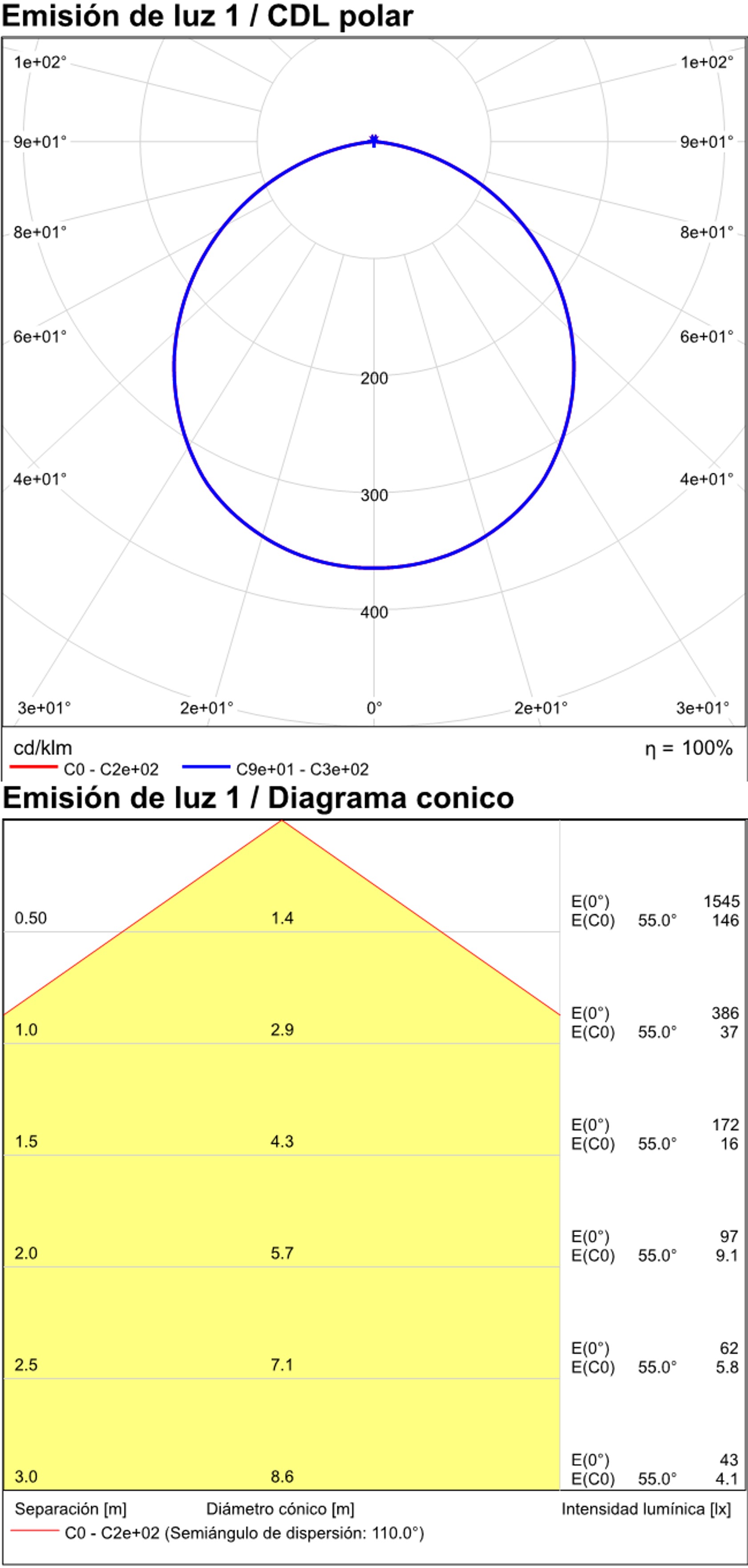 Especificaciones y datos fotométricos