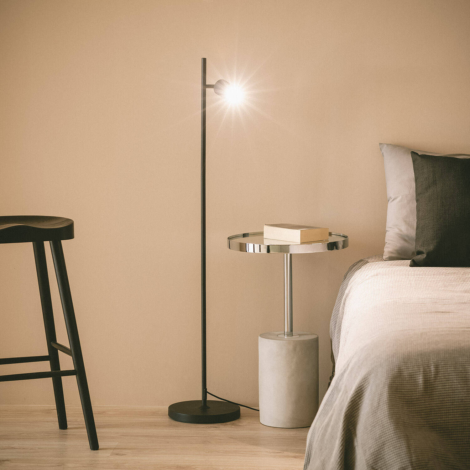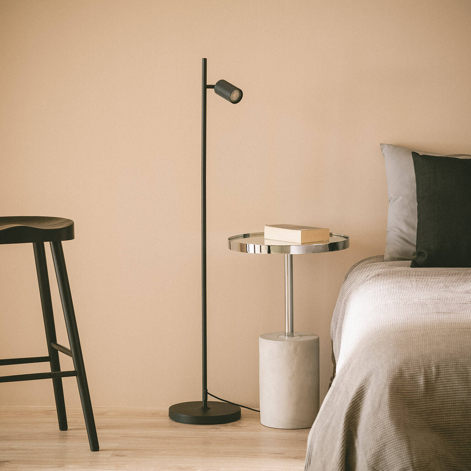 La lámpara de pie Aritz destaca por su diseño minimalista y elegante en aluminio negro, ideal para ambientes interiores modernos. Su estructura delgada y base estable aportan un toque sofisticado sin ocupar espacio visual, mientras que el foco orientable con casquillo GU10 permite dirigir la luz justo donde se necesite. Funciona con bombillas no incluidas, lo que ofrece flexibilidad para elegir la temperatura y tipo de luz según el ambiente. Apta para temperaturas de -20 °C a 50 °C, es perfecta para cualquier estancia del hogar. Además, cuenta con certificaciones CE y RoHS, garantía de calidad y seguridad. Su instalación es sencilla sobre superficie, complementando cualquier decoración con funcionalidad y estilo.