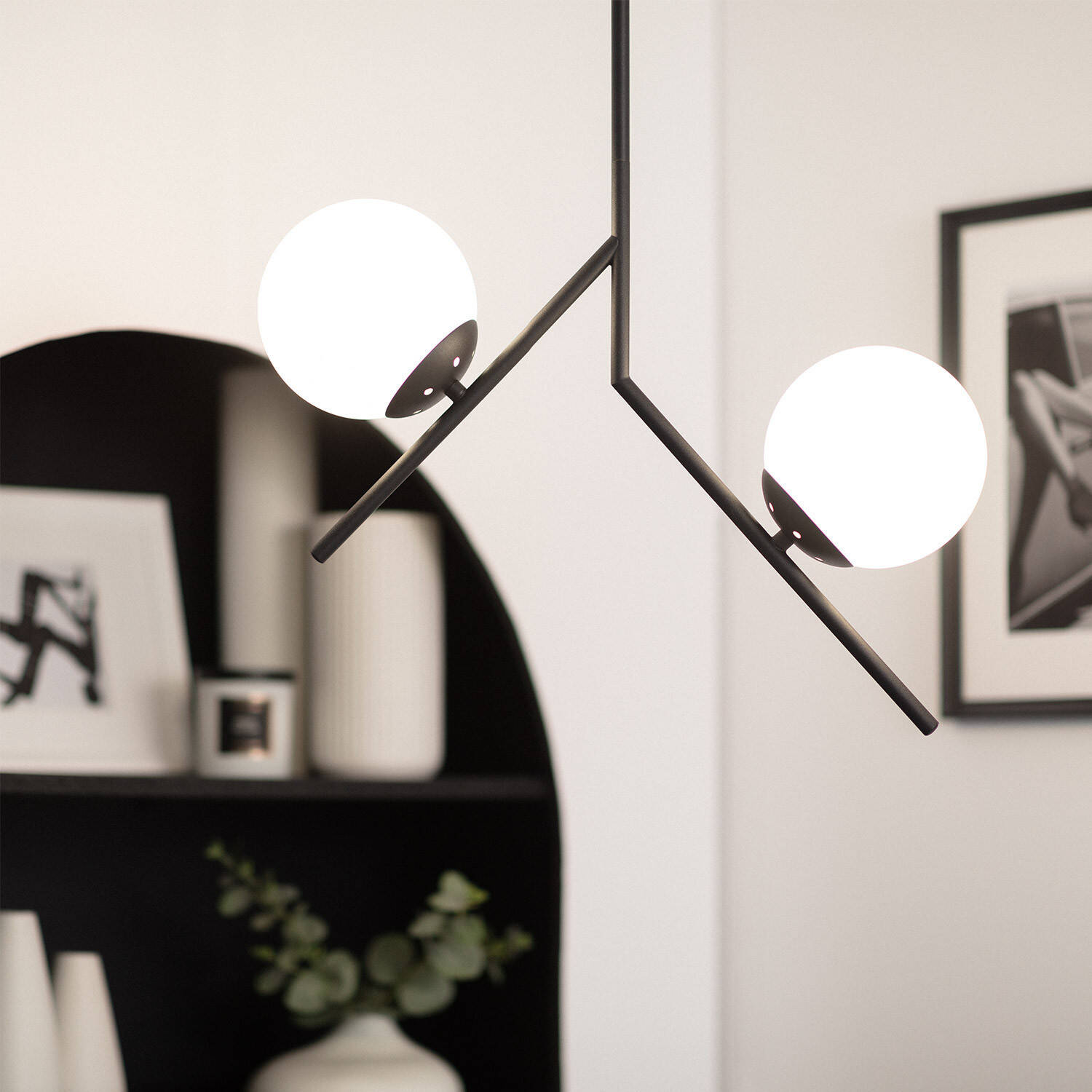 La lámpara de techo Balts combina un diseño moderno y elegante con materiales de alta calidad. Su estructura de metal negro contrasta con las esferas de cristal opal, que aportan una iluminación suave y difusa, ideal para ambientes interiores. Cuenta con dos puntos de luz con casquillos E27, permitiendo elegir las bombillas según la atmósfera deseada (no incluidas). Su instalación colgante y protección IP20 la hacen perfecta para salones, comedores o espacios contemporáneos. Soporta temperaturas de -20 °C a 50 °C y ofrece una garantía de 3 años, asegurando durabilidad y seguridad certificada (CE, RoHS, UKCA). Un toque sofisticado que realza cualquier estancia con estilo y funcionalidad.