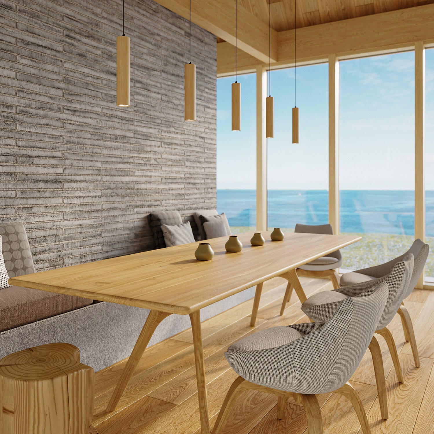 Lámpara Colgante Lino Madera SOLLUX