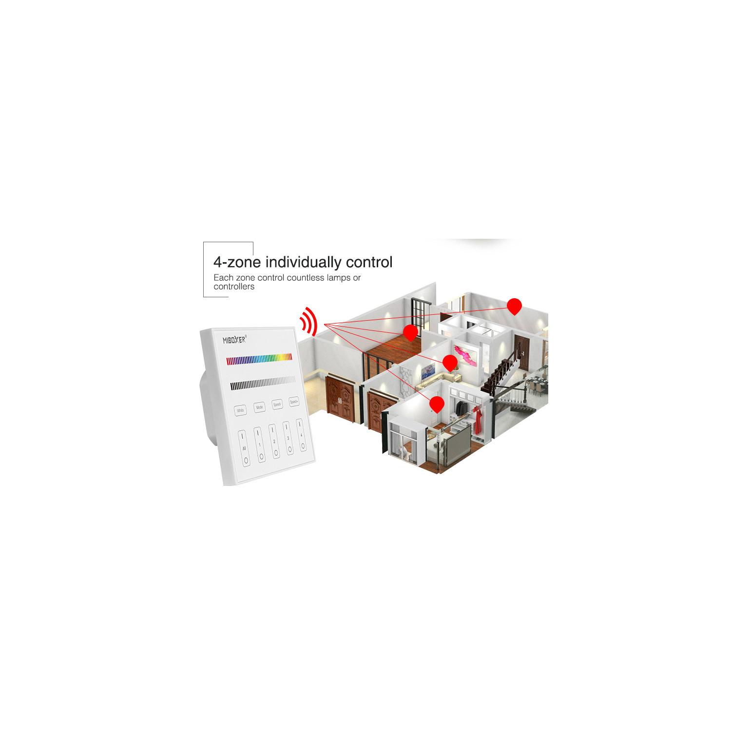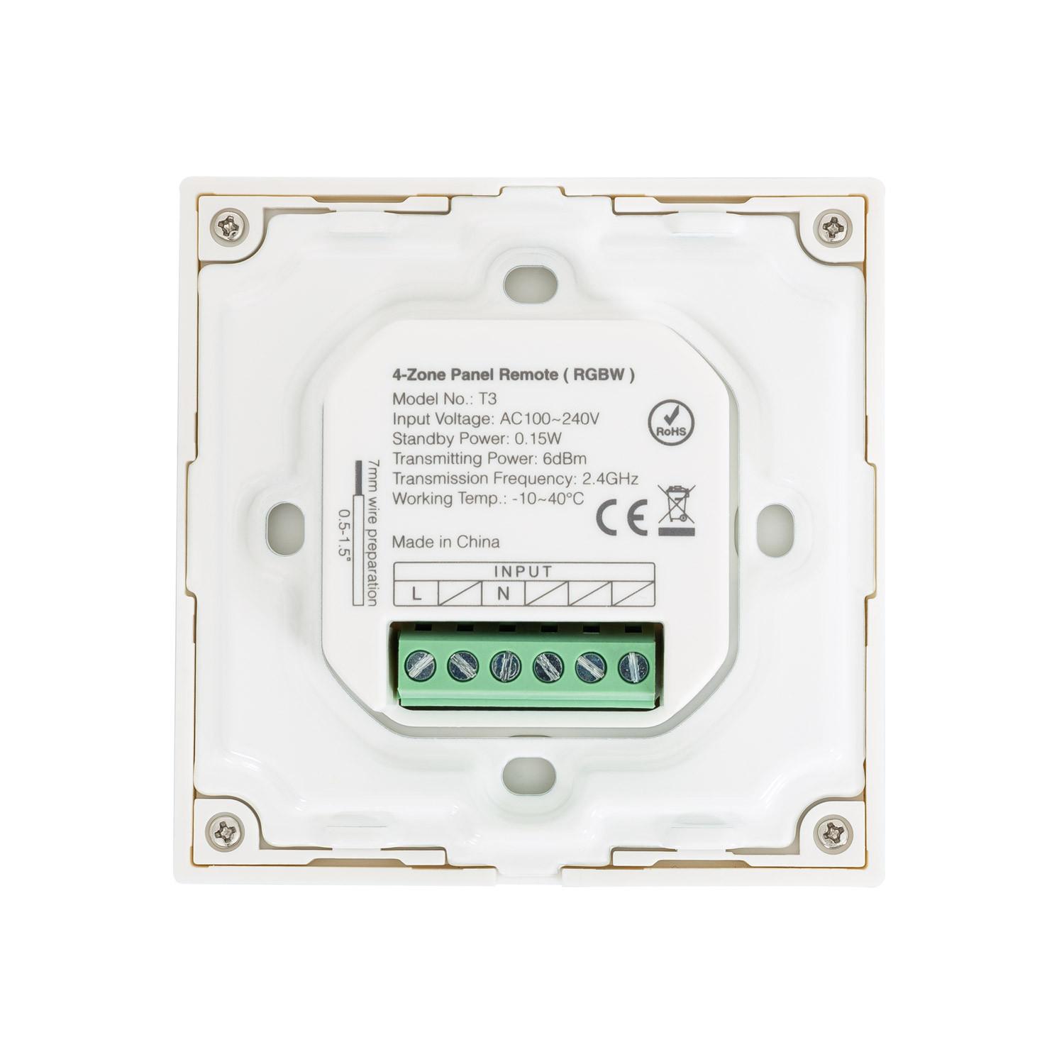 Mando RF 220-240V AC de Pared para Regulador LED RGBW 4 RF Zonas MiBoxer T3