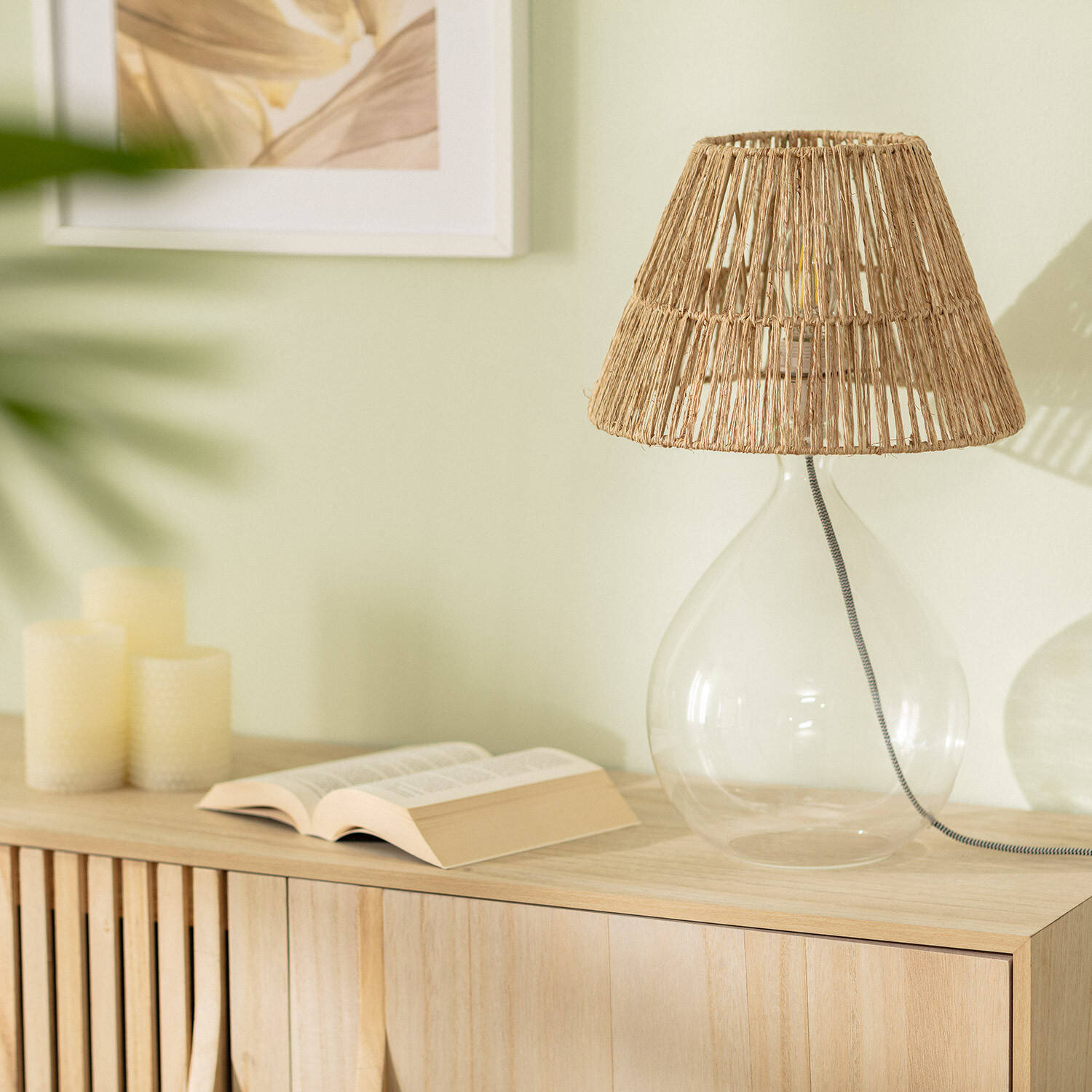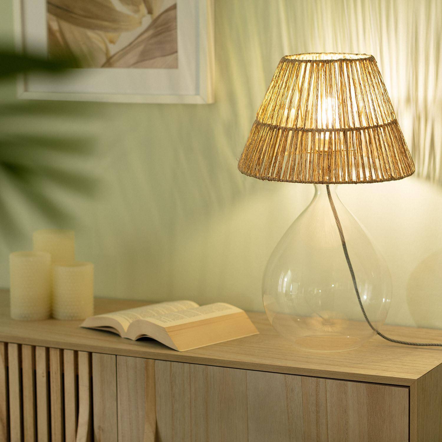 La Lámpara de Mesa Yute y Cristal Aurora combina elegancia natural y diseño contemporáneo para iluminar cualquier espacio interior con estilo. Su base de cristal transparente, de forma redondeada y delicada, aporta ligereza visual, mientras que la pantalla tejida en yute natural introduce un toque rústico y cálido. Compatible con bombillas E27 de hasta 40W (no incluidas), ofrece una iluminación acogedora y ambiental perfecta para salones, dormitorios o zonas de lectura. Su acabado artesanal y materiales naturales hacen de esta lámpara un elemento decorativo versátil, que se adapta a estilos modernos, bohemios o nórdicos. Además, cuenta con certificaciones CE, RoHS y UKCA, y una garantía de 3 años que asegura calidad y durabilidad.