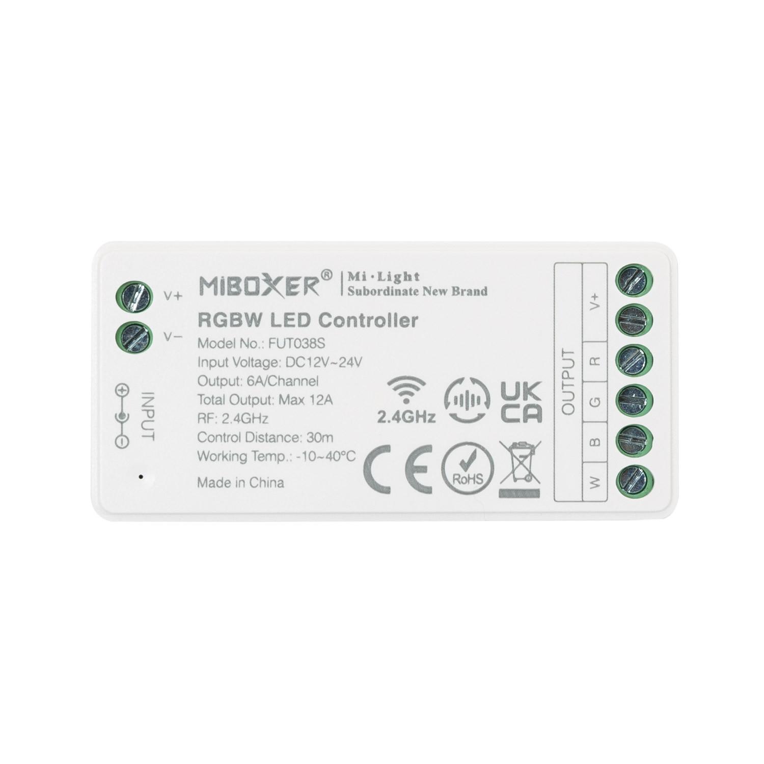 Controlador Regulador RGBW 12/24V DC + Mando RF 8 Zonas MiBoxer