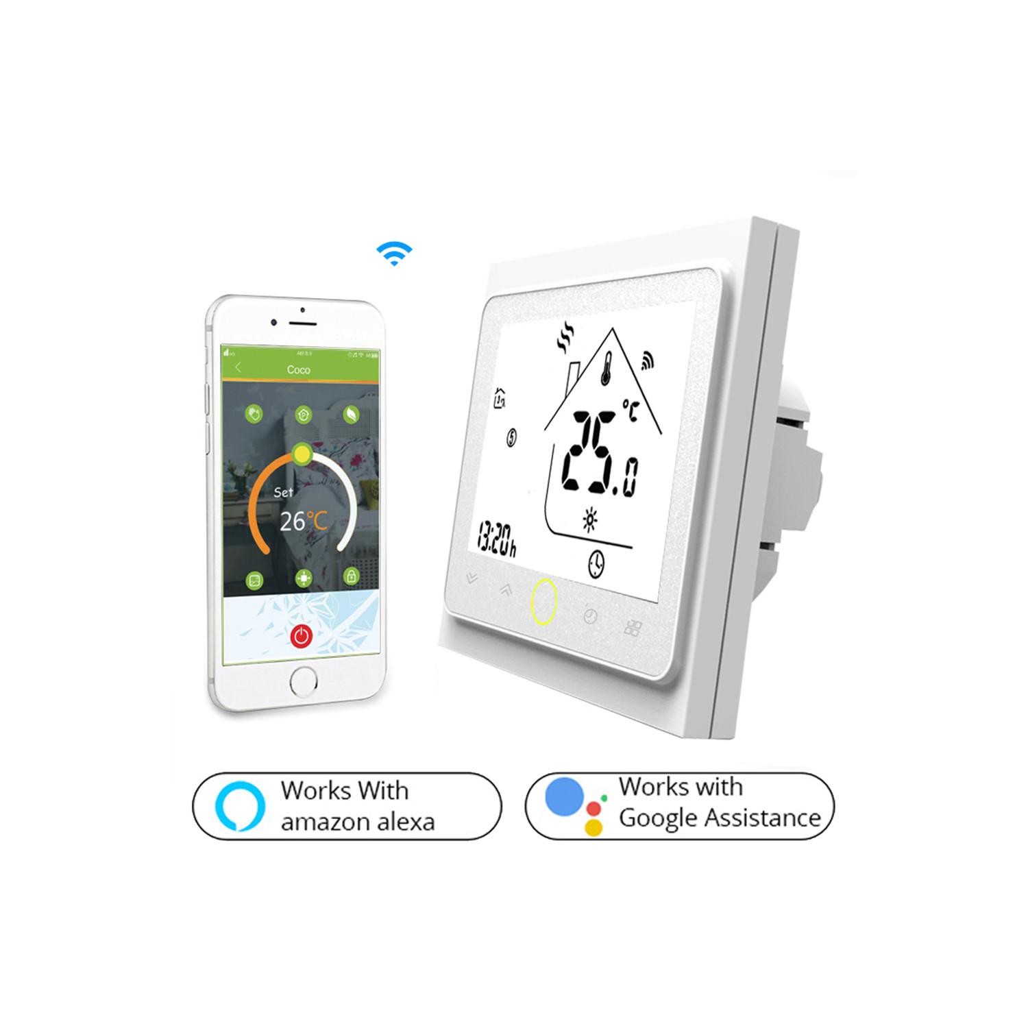 Controla la calefacción de tu hogar con el Termostato WiFi Programable Blanco, diseñado para ofrecer confort y eficiencia energética. Su instalación empotrable y diseño minimalista en color blanco se integran perfectamente en cualquier espacio interior. Compatible con Amazon Alexa y Google Assistant, permite gestionar la temperatura desde tu smartphone o mediante comandos de voz, facilitando un control cómodo y moderno. Fabricado en materiales ABS y PC, soporta temperaturas de trabajo entre 0 °C y 40 °C, con una intensidad máxima de 5 amperios y tensión de 220-240V AC. Cuenta con certificaciones CE, RoHS y UKCA, garantizando calidad y seguridad. Además, incluye una garantía de 3 años y protección IP20 para uso en interiores.