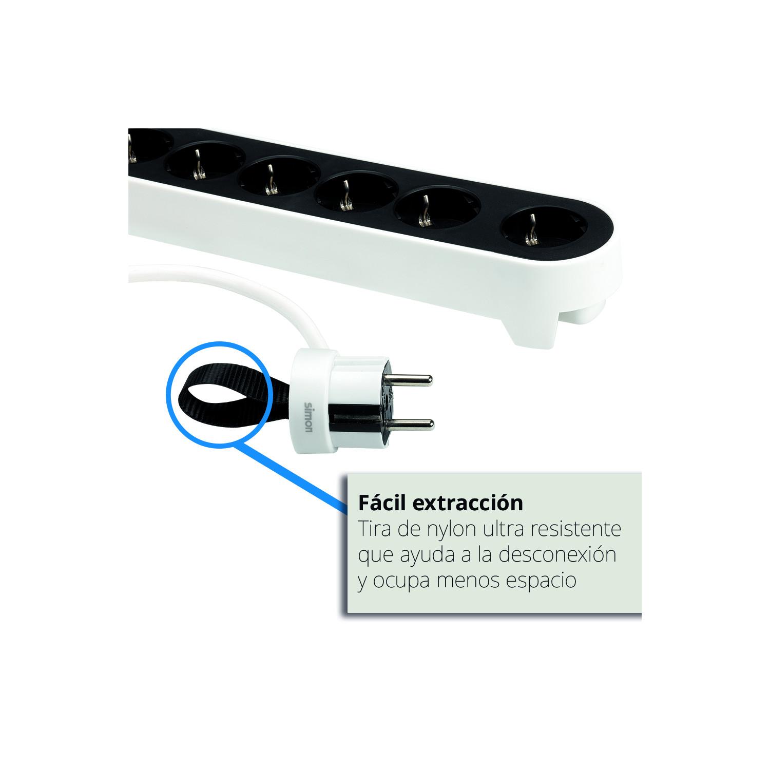 La base múltiple SIMON BM712401 ofrece una solución práctica y segura para distribuir energía en interiores. Cuenta con 4 enchufes tipo F Schuko y un cable de 1.4 metros, ideal para uso doméstico e industrial. Su diseño incluye un botón de encendido/apagado accionable con el pie, facilitando su uso sin agacharse. Fabricada en resistente PC, combina los colores blanco y negro para un acabado moderno. Dispone de una base ordenacables que oculta el cableado, manteniendo el espacio limpio y organizado. Además, incorpora una tira de nylon resistente para facilitar la extracción del enchufe. Certificada con sello CE y clase de aislamiento II, garantiza seguridad y durabilidad, respaldada por una garantía de 3 años.