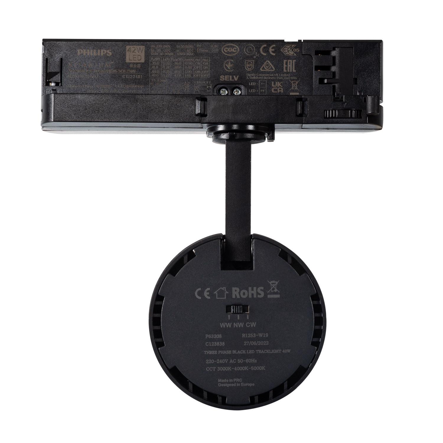 Foco Carril LED Trifásico 40W CCT Seleccionable d'Angelo PHILIPS Xitanium Negro