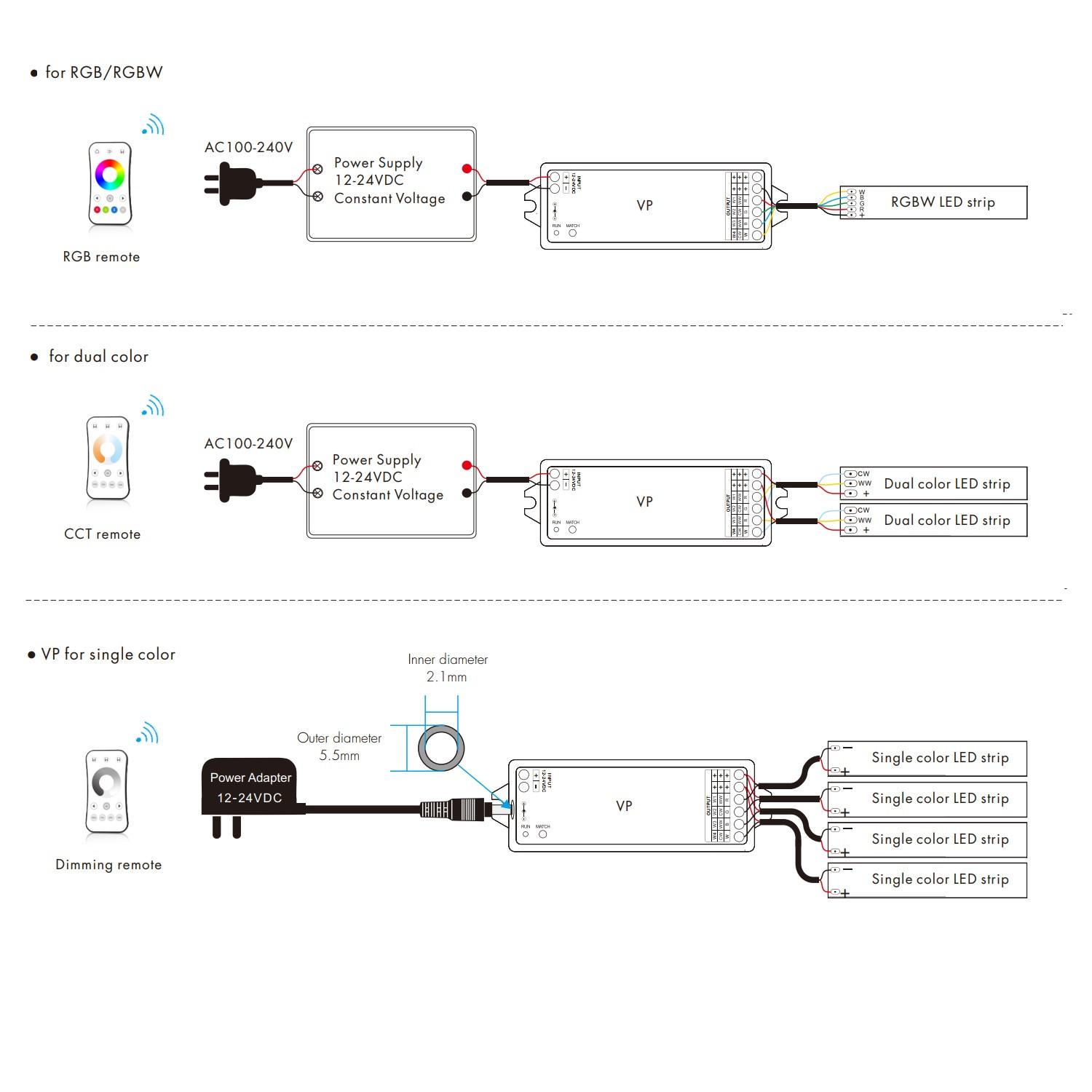 Controlador Regulador LED 12/24V DC para Tira LED Monocolor/CCT/RGB/RGBW compatible con Mando RF