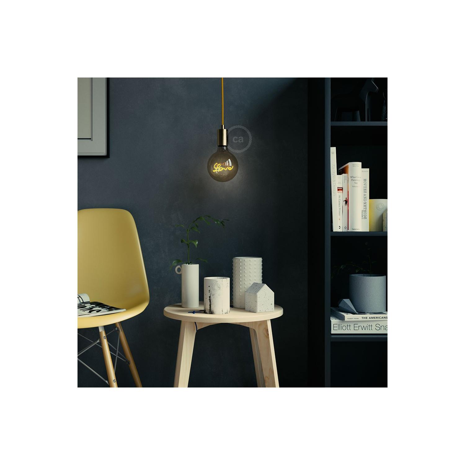 La bombilla Filamento LED E27 de 5W de Creative-Cables combina diseño y funcionalidad en un formato vintage con estilo contemporáneo. Su filamento en forma de la palabra "Love" aporta un toque decorativo y cálido, ideal para ambientes acogedores. Emite una luz súper cálida de 2200K con 250 lúmenes, regulable mediante tecnología TRIAC para adaptar la intensidad según el momento. Su casquillo E27 facilita la instalación en interiores, mientras que su ángulo de apertura de 360º garantiza una iluminación uniforme. Certificada con CE, RoHS y UKCA, ofrece calidad y seguridad. Forma parte de la serie Vintex, que destaca por sus cables textiles y estética cuidada, aportando personalidad y calidez a cualquier espacio. Cuenta con 3 años de garantía.