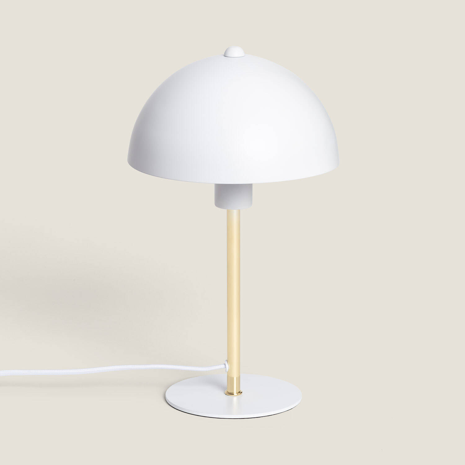 La lámpara de mesa Wavuli destaca por su diseño minimalista y elegante, combinando una estructura de aluminio blanco con detalles dorados que aportan sofisticación a cualquier espacio interior. Su pantalla en forma de cúpula ofrece una iluminación focalizada y agradable, ideal para escritorios o mesitas de noche. Compatible con bombillas E14 de hasta 25W, permite personalizar la intensidad lumínica según tus necesidades (bombilla no incluida). Certificada con CE, RoHS y UKCA, garantiza seguridad y calidad. Resistente a temperaturas entre -20 °C y 50 °C, es perfecta para ambientes domésticos. Además, cuenta con protección IP20 y una garantía de 3 años, asegurando durabilidad y confianza en su uso diario.