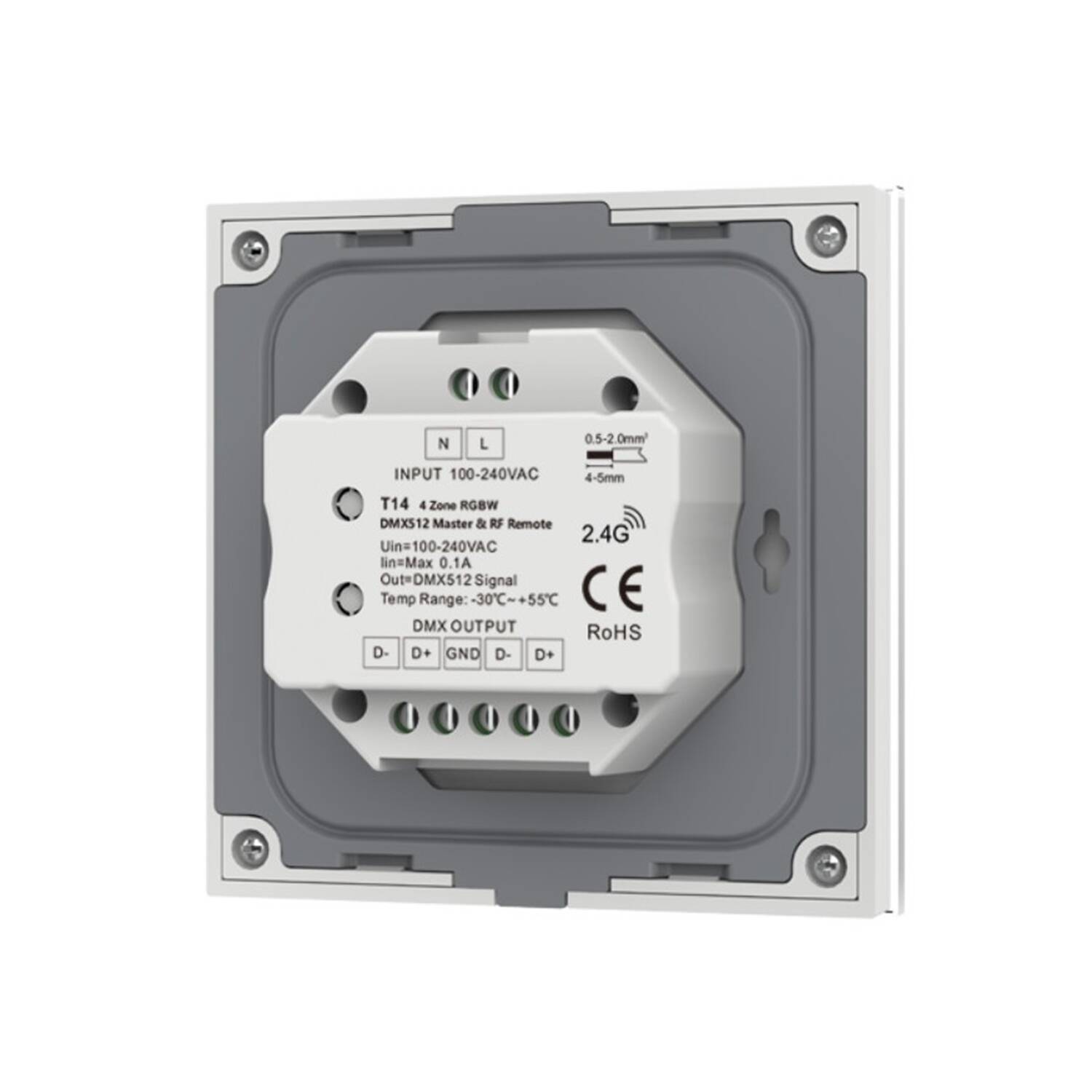 El Regulador Master DMX Táctil RGBW de 4 zonas es un dispositivo avanzado para el control de iluminación interior. Su diseño empotrable en cristal blanco ofrece un acabado elegante y moderno. Permite gestionar hasta cuatro zonas de iluminación RGBW mediante una interfaz táctil intuitiva con rueda de colores para una selección precisa. Compatible con señal DMX512, garantiza una regulación eficiente y profesional. Funciona en un amplio rango de temperaturas (-30 °C a 55 °C) y cuenta con certificaciones CE, EMC, RED y RoHS, asegurando calidad y seguridad. Opera con tensión de 220-240V AC y tiene protección IP20. Ideal para ambientes que requieren control personalizado y versátil de la iluminación, con una garantía de 3 años que respalda su durabilidad.